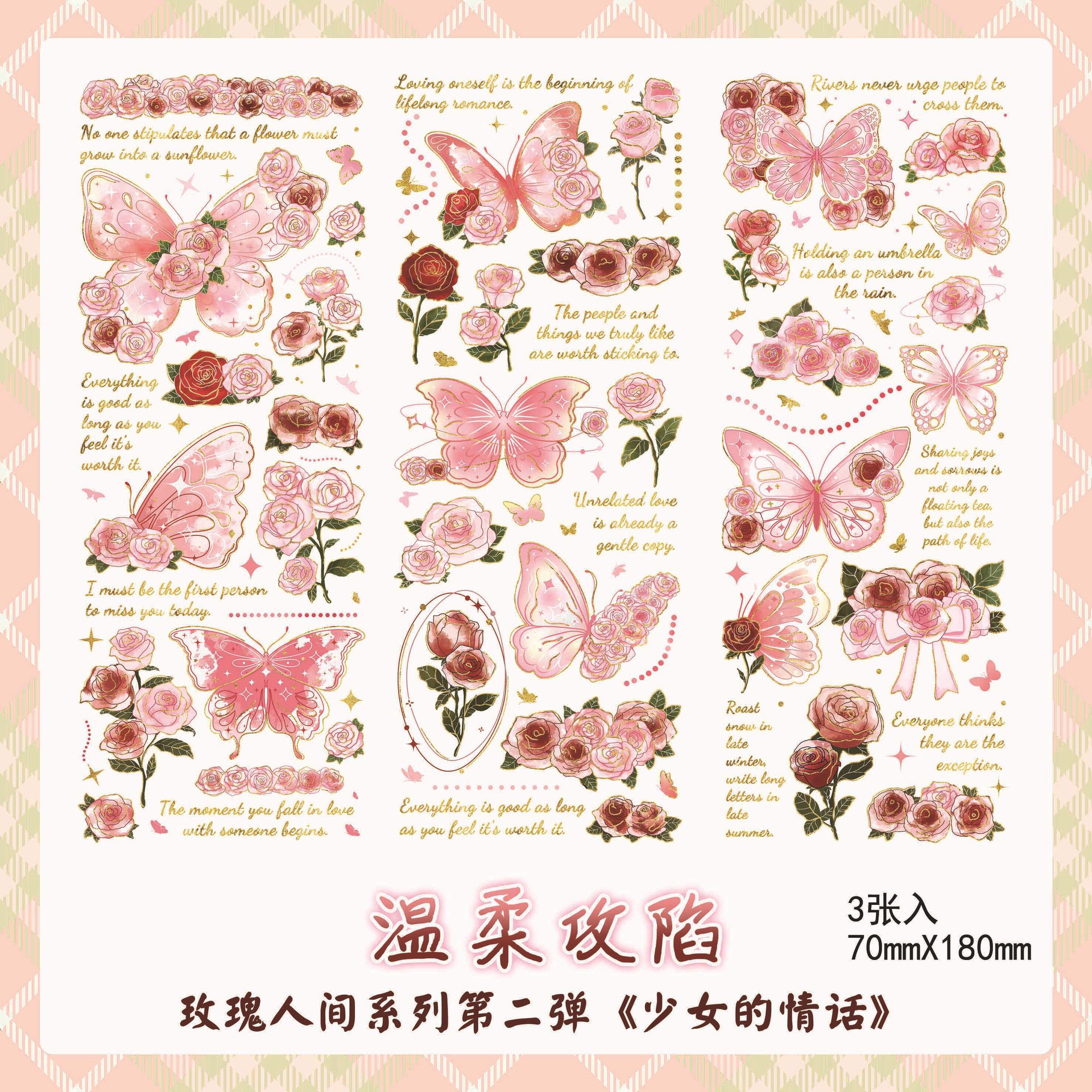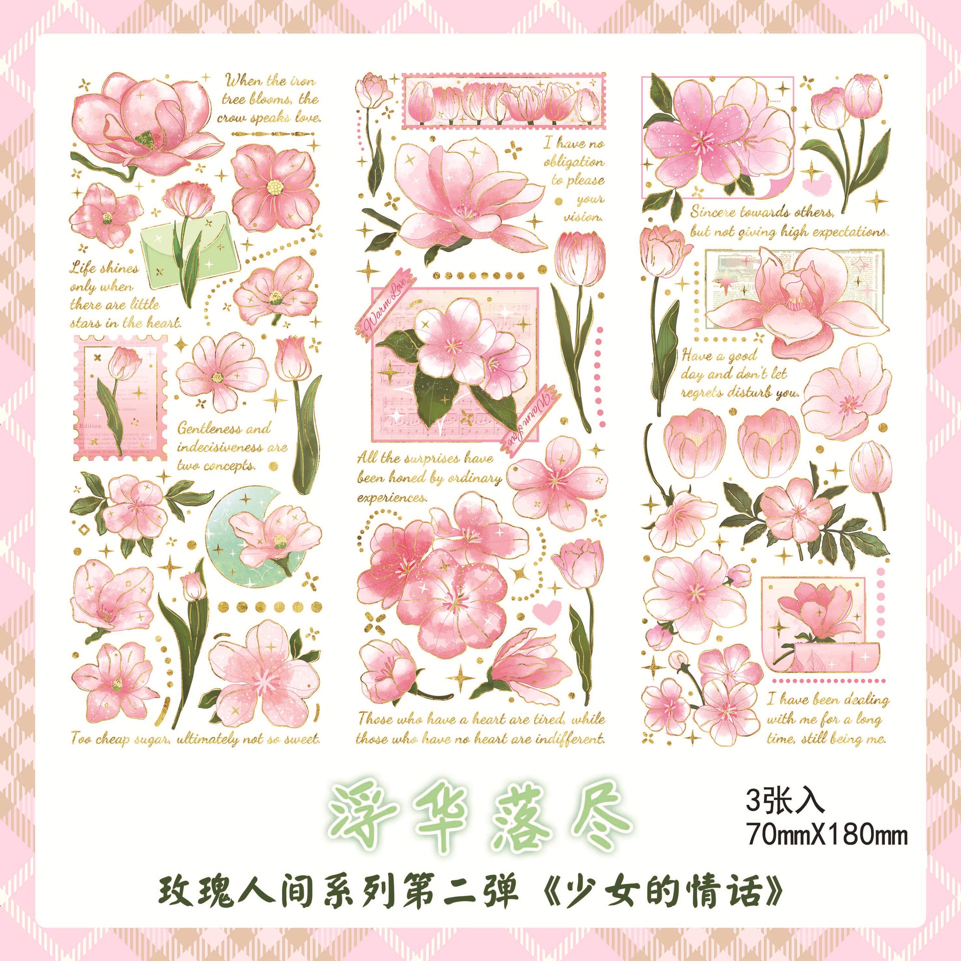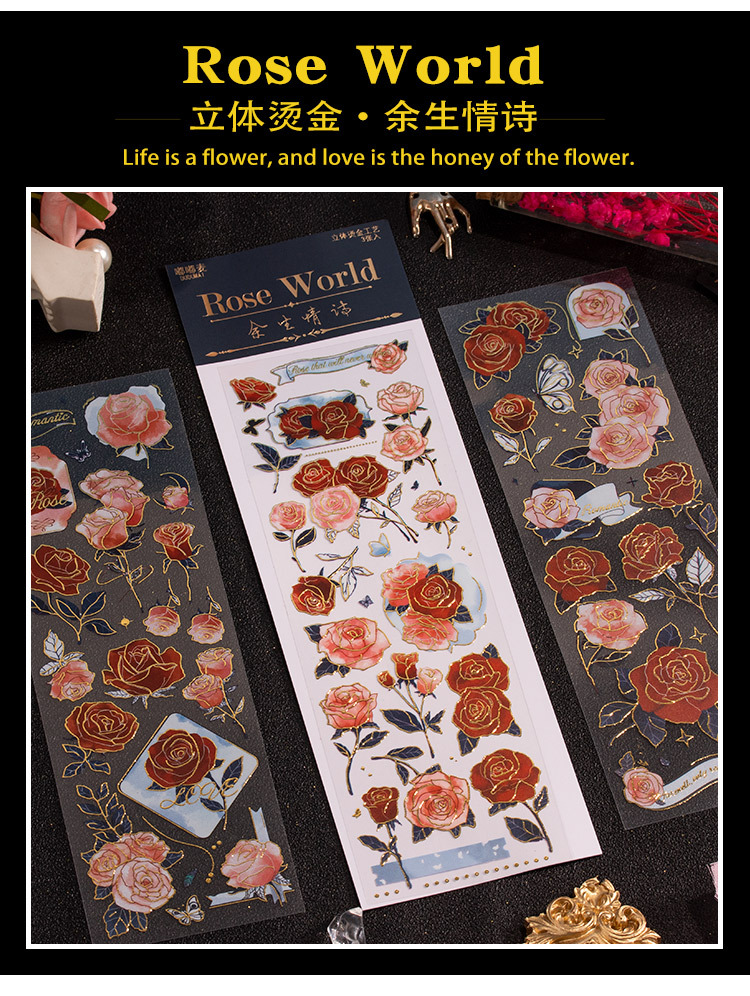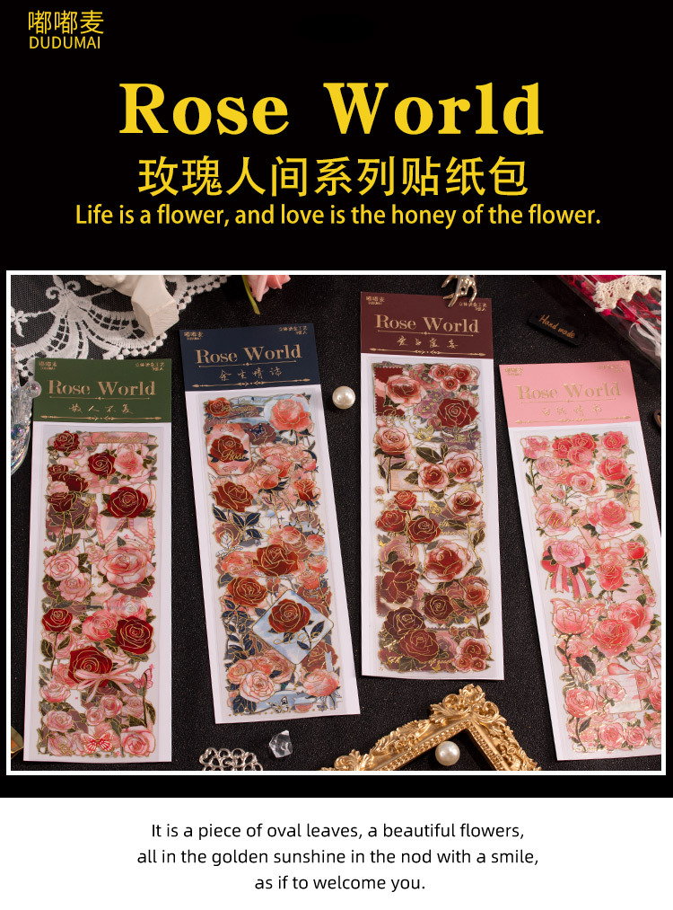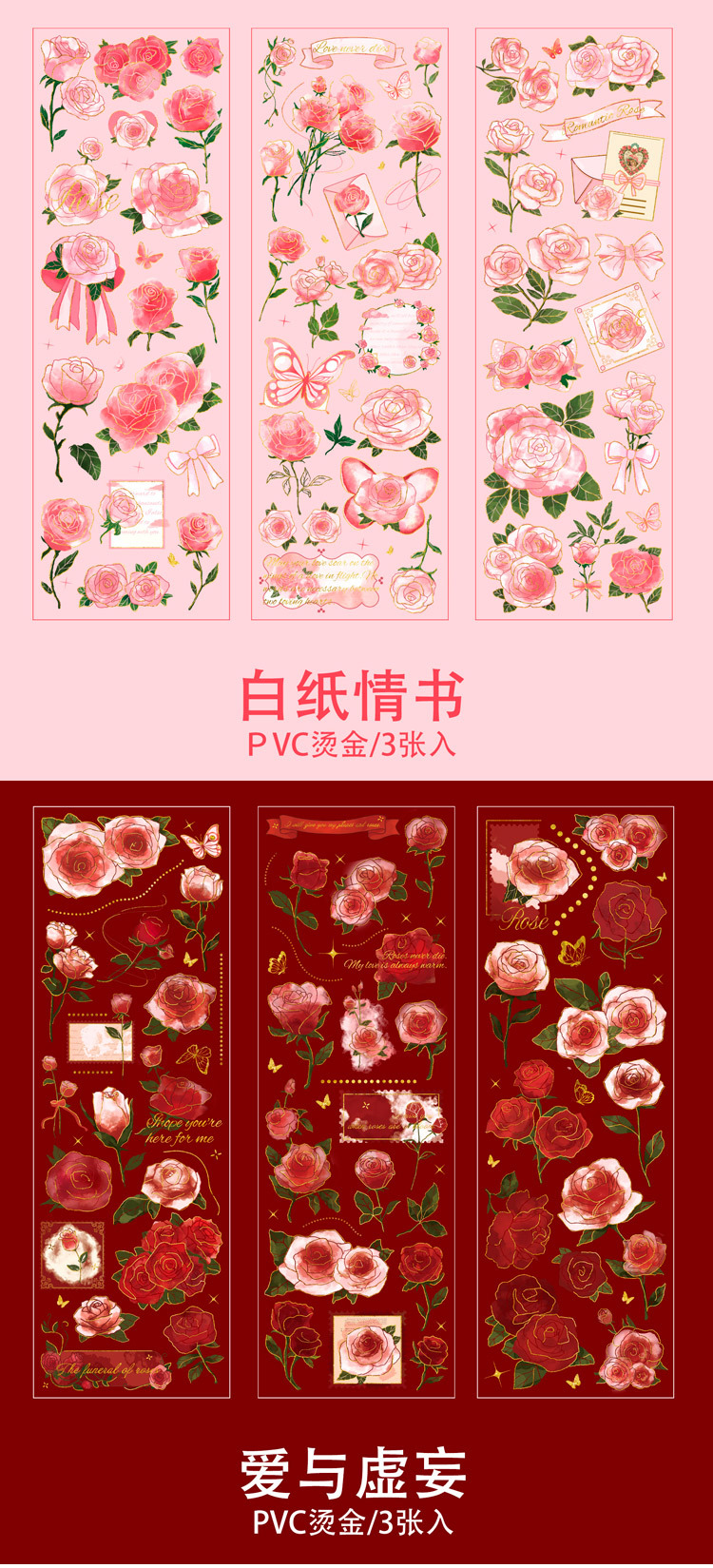 레트로 장미 인간 PVC 스테레오 브론징 스티커 로맨틱 꽃 손 계정 DIY 재료 콜라주 장식 작은 스티커스토어 가기