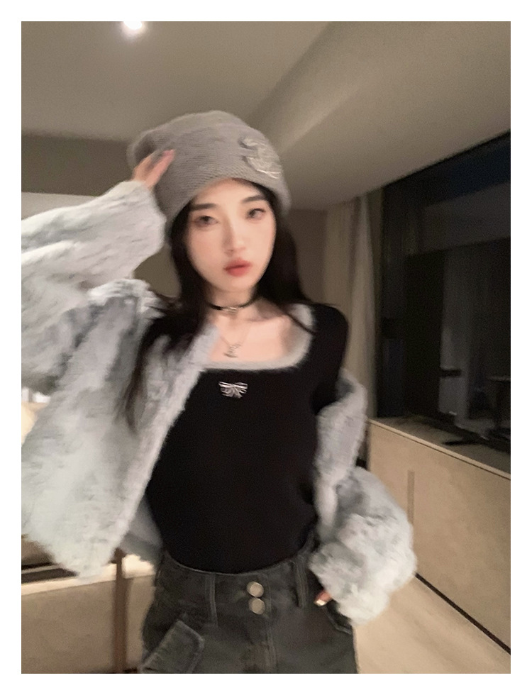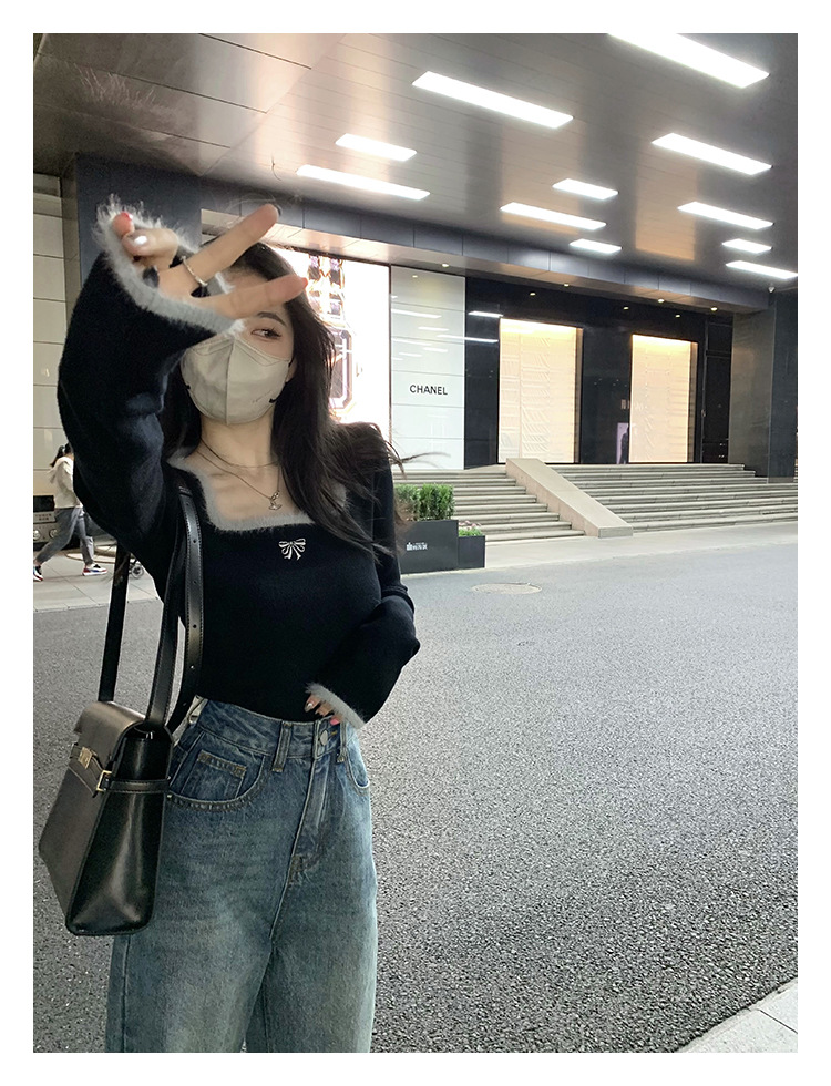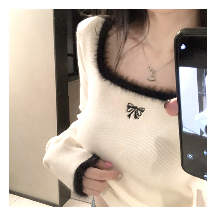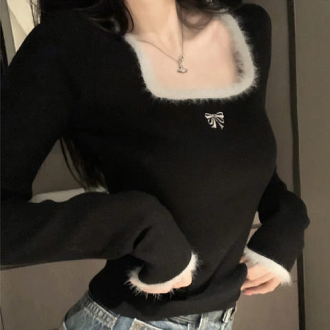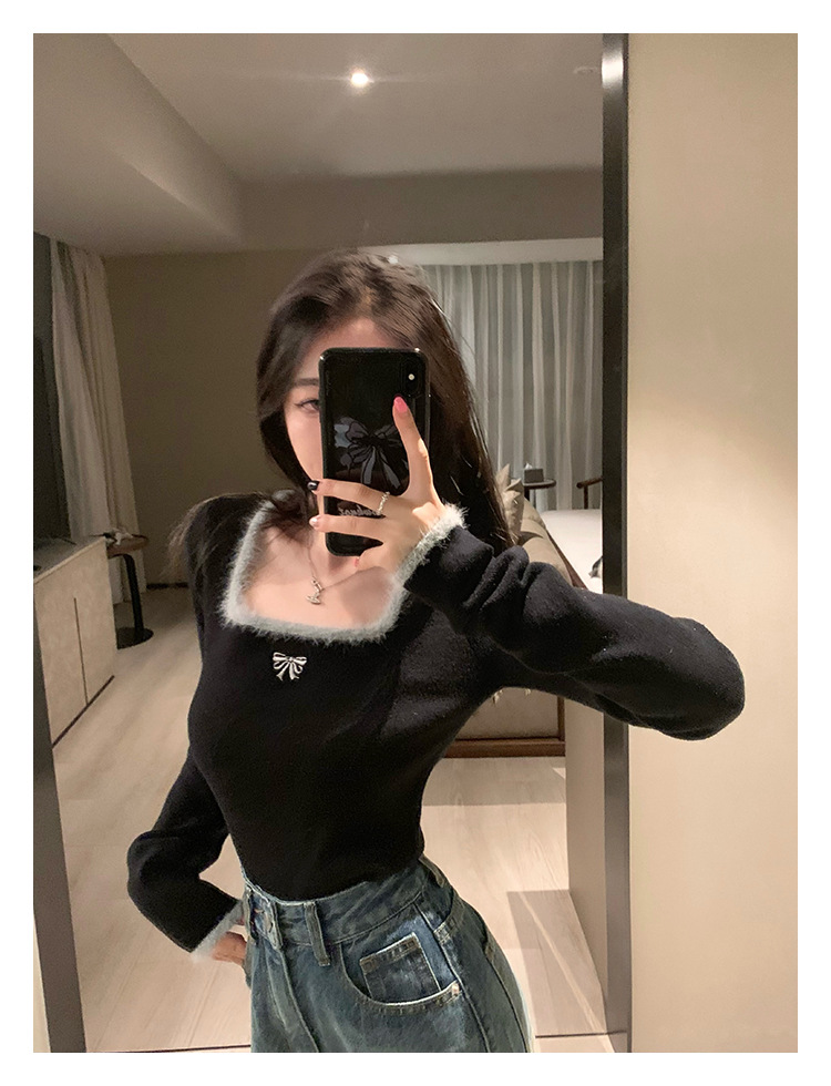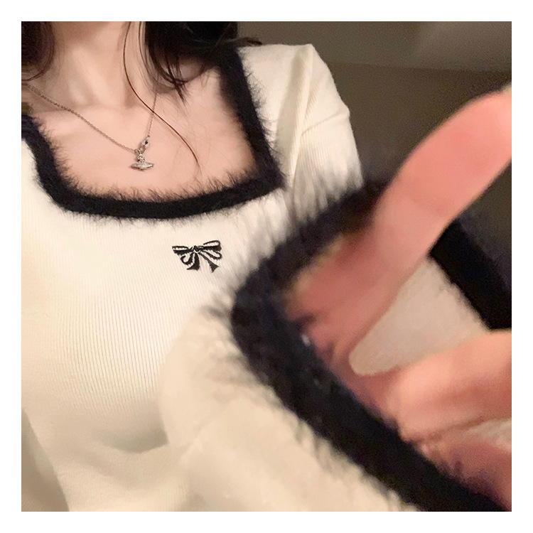 소프트 왁스 양털 스퀘어 칼라 베이스 셔츠 티셔츠 여성용 봄 의류 디자인 센스 가을과 겨울 인테리어 순수한 욕망 하이 엔드 센스 긴팔 탑