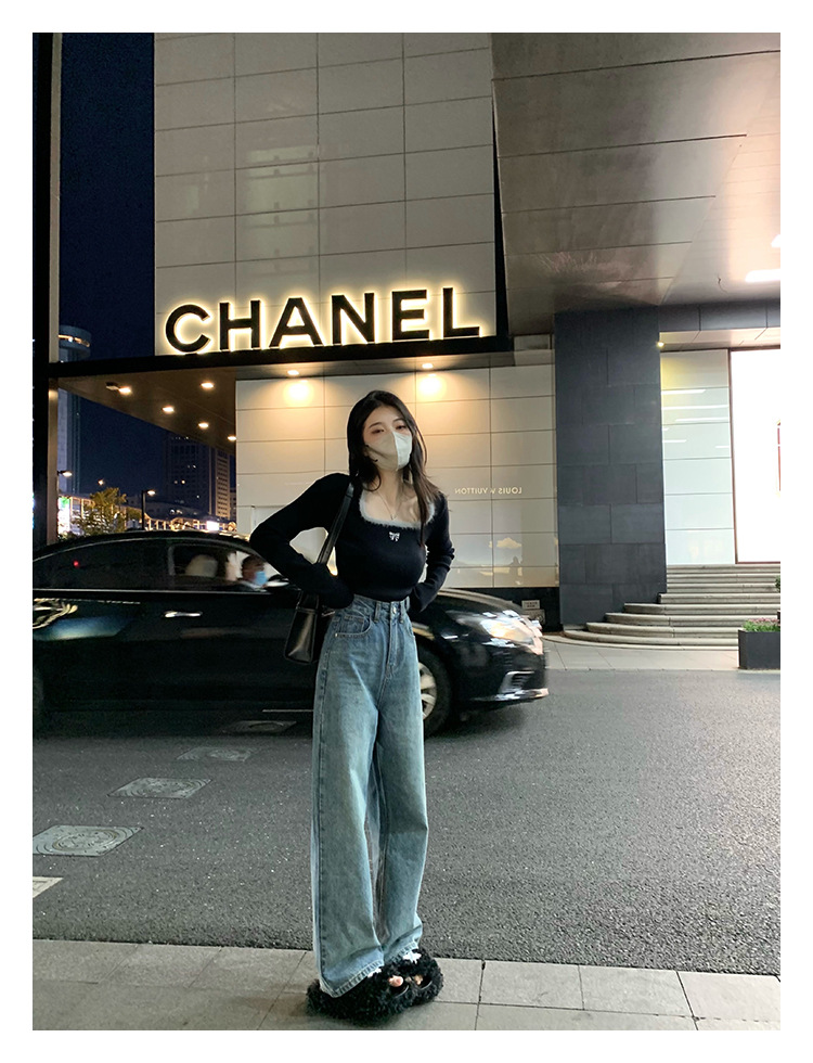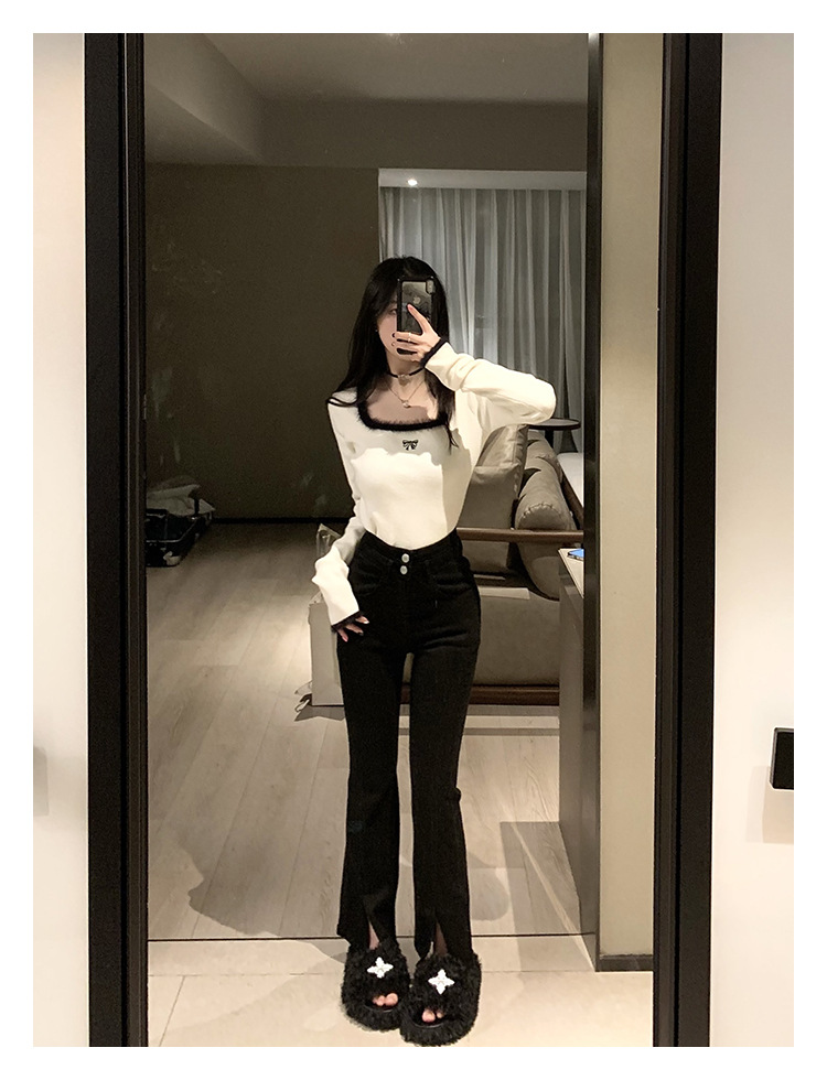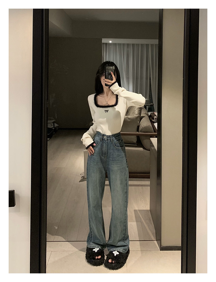 소프트 왁스 양털 스퀘어 칼라 베이스 셔츠 티셔츠 여성용 봄 의류 디자인 센스 가을과 겨울 인테리어 순수한 욕망 하이 엔드 센스 긴팔 탑스토어 가기