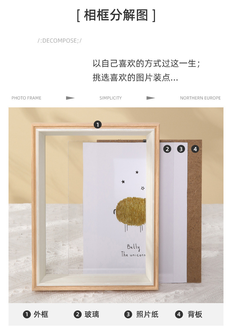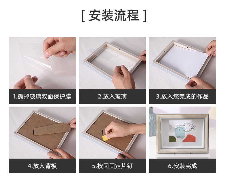 二、相框成品包含:(外框、塑料有机玻璃、照片纸,后固定背板、挂钩)