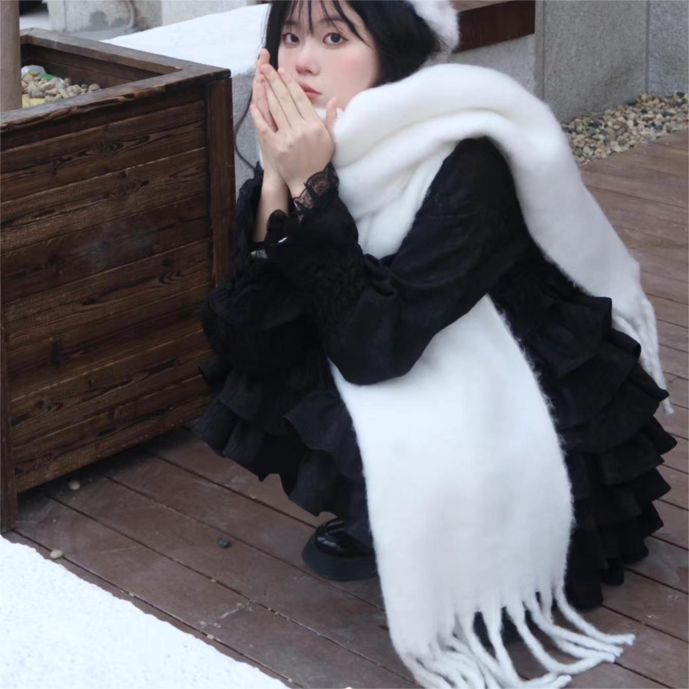 (떨어지는) 솔리드 컬러 두꺼운 브레이드 스카프 여자 겨울 유럽과 미국의 두껍고 라인드 올 매치 오프 화이트 모헤어스토어 가기