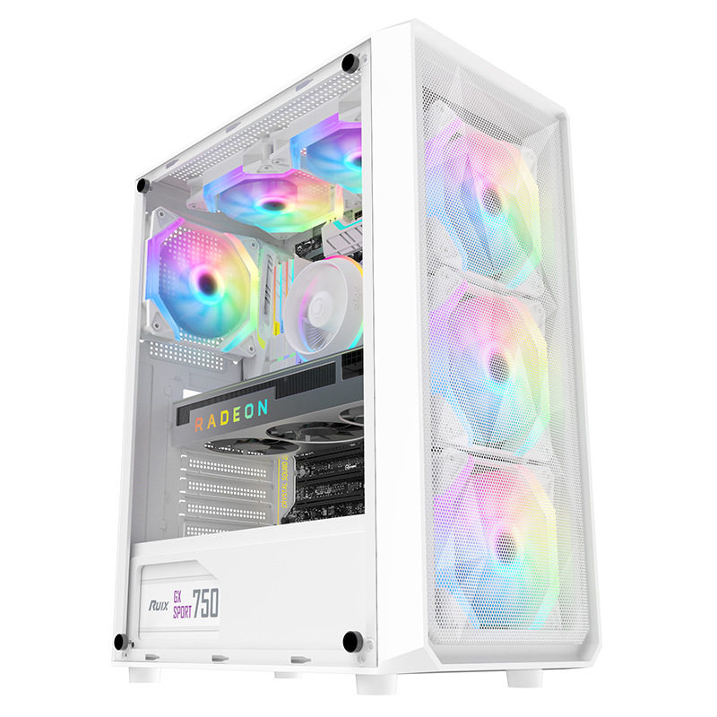 도매 컴퓨터 섀시 데스크탑 섀시 게임 백 라인 풀 사이드 투명 컴퓨터 철 그물 냉각 섀시 레이 컷 화이트