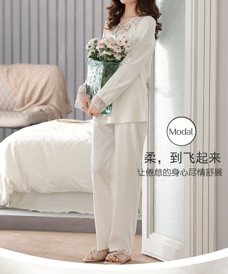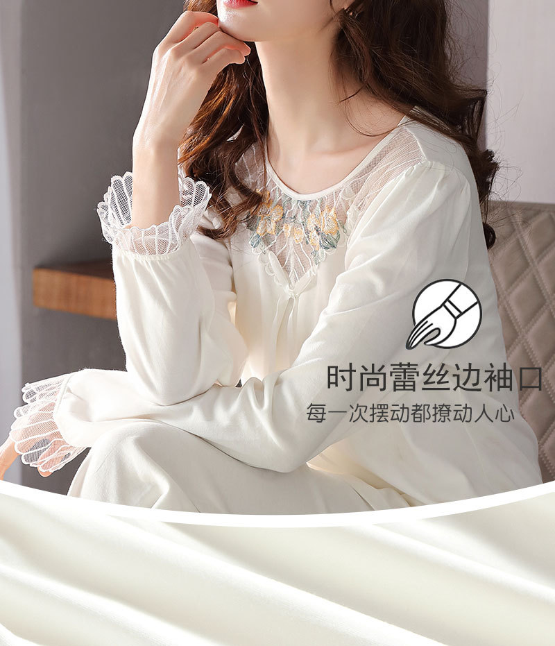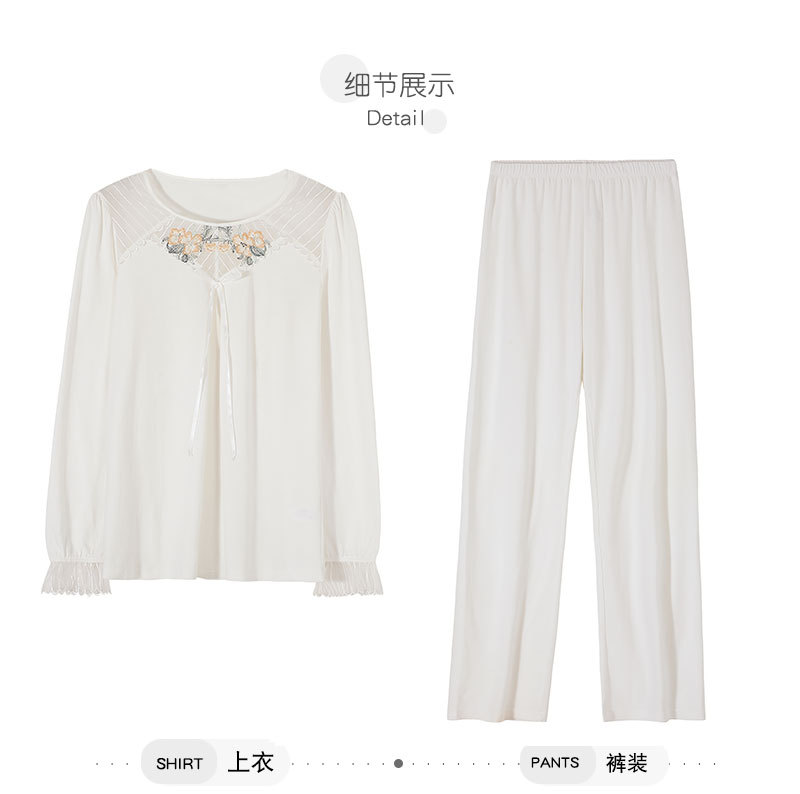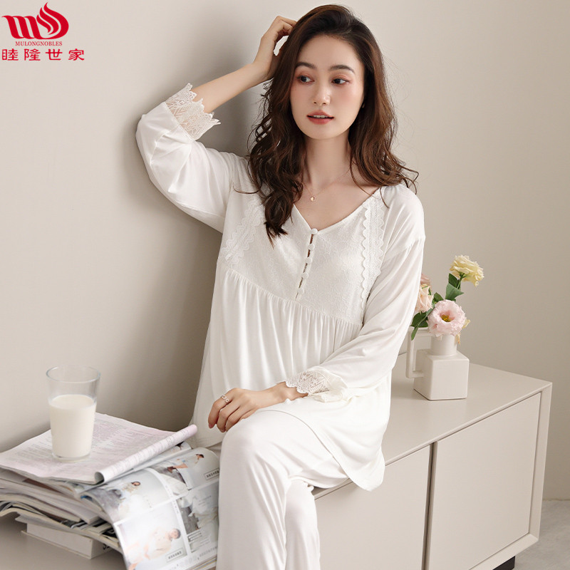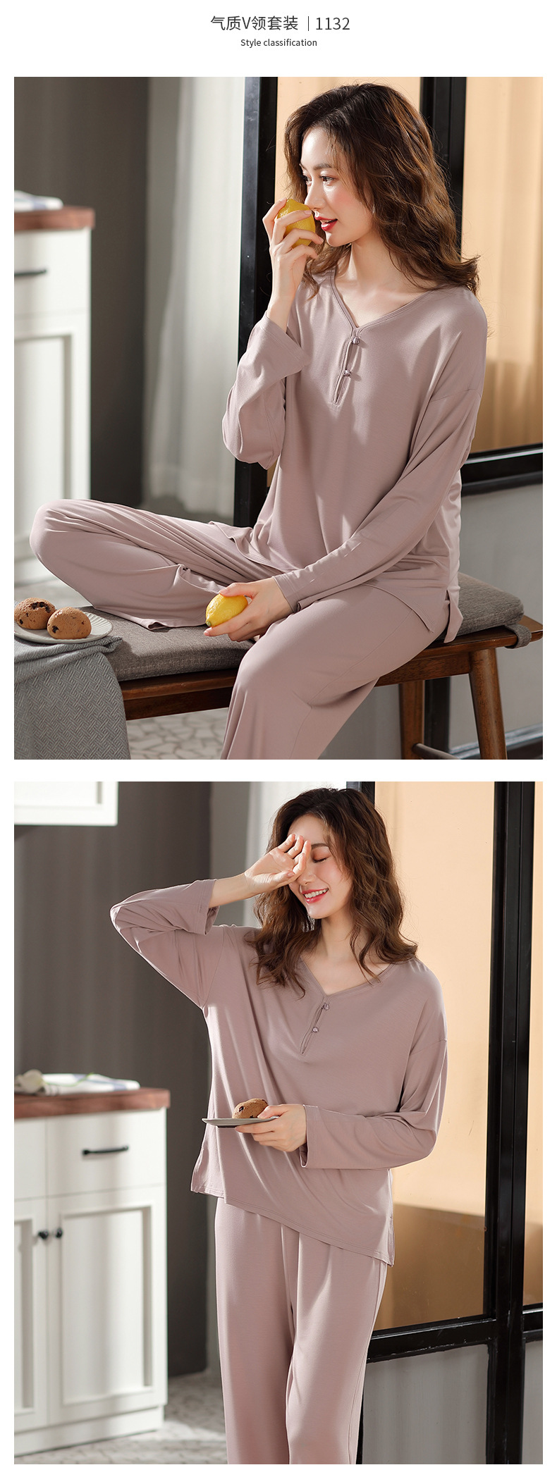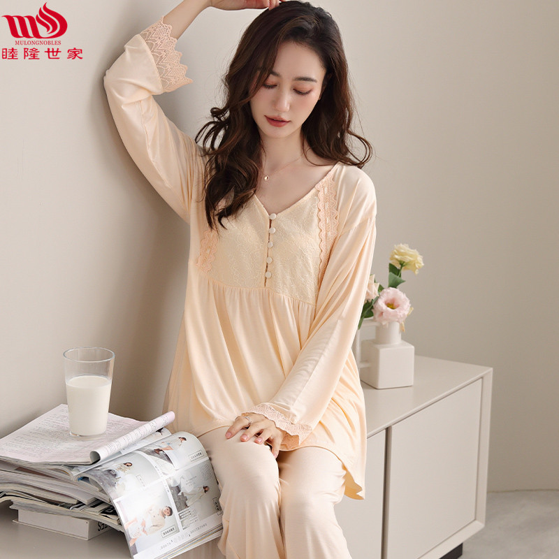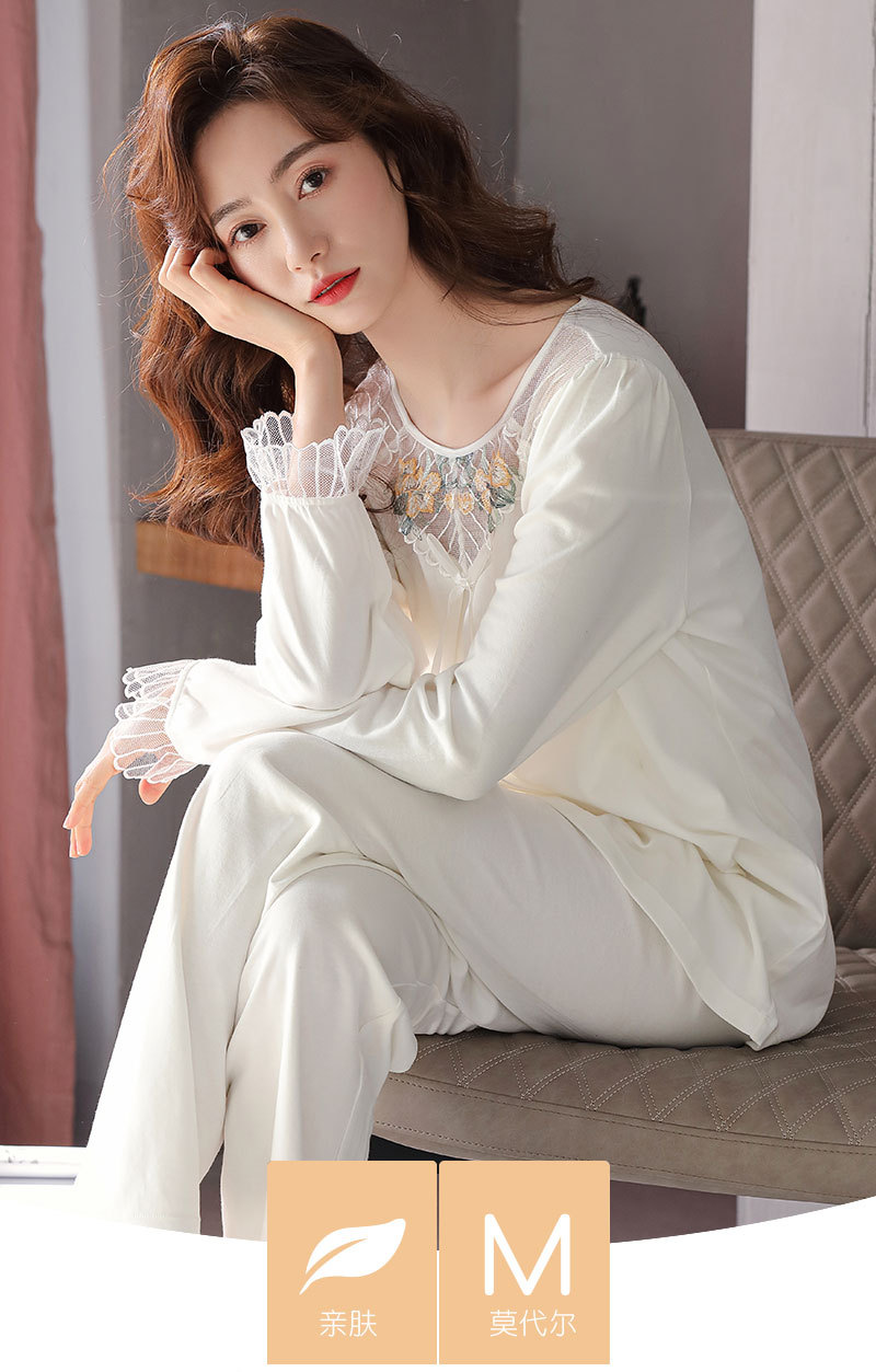 잠옷 여성의 봄과 가을 새로운 모데일면 긴팔 얇은 플러스 사이즈 카디건 실크 투피스 홈 의류 세트스토어 가기