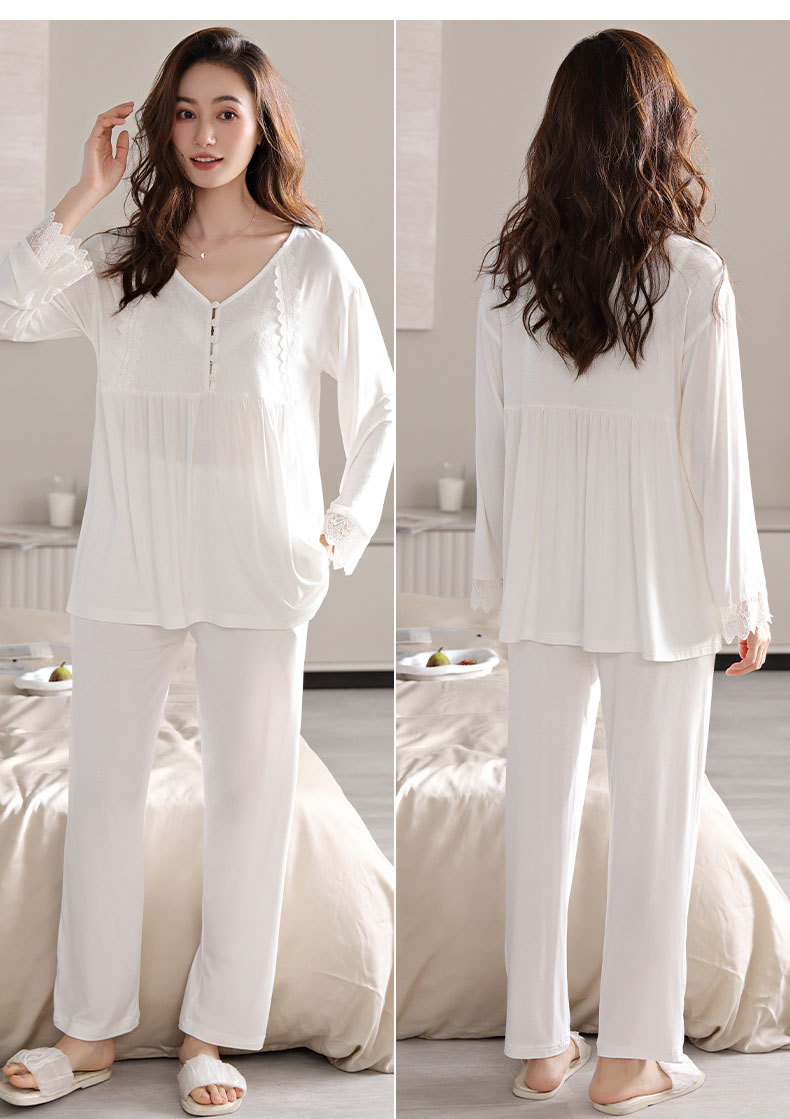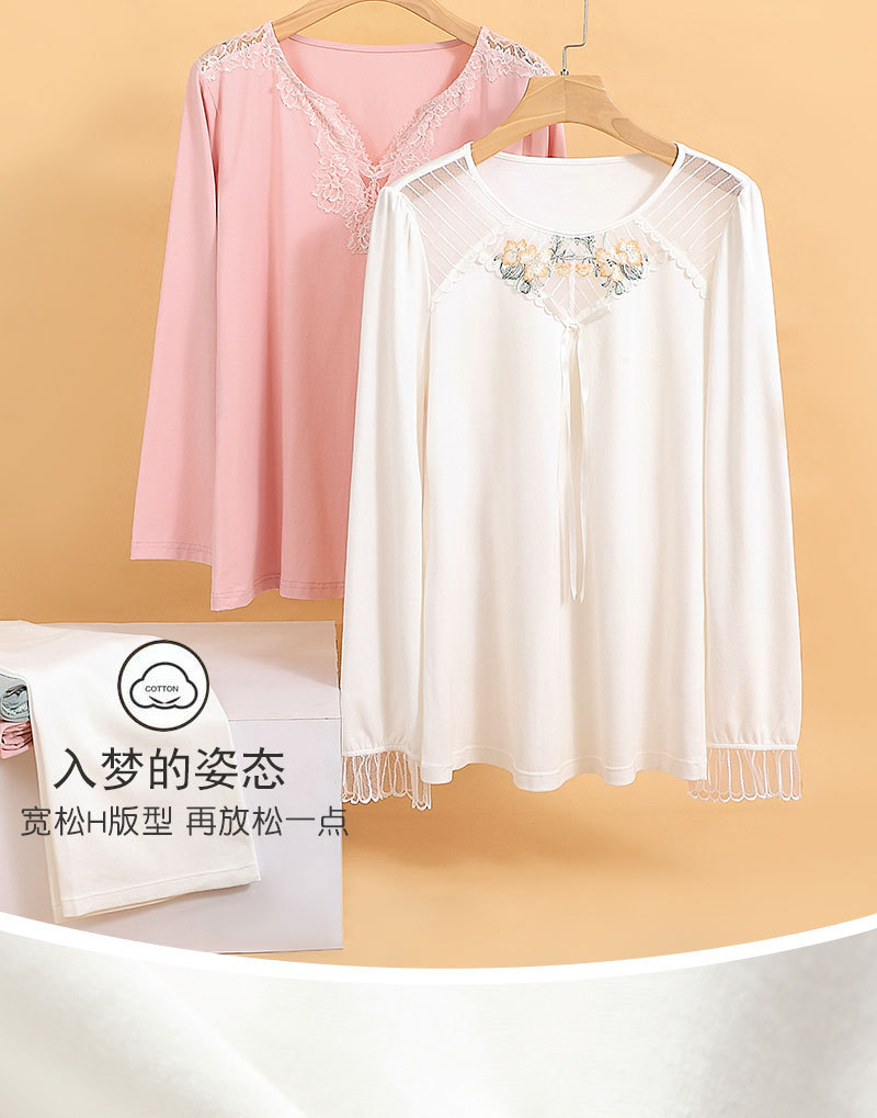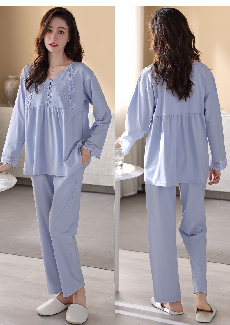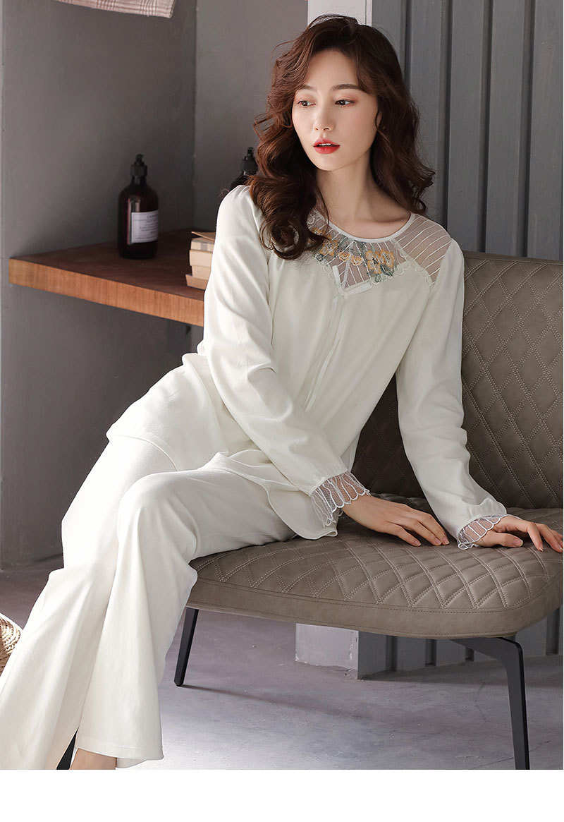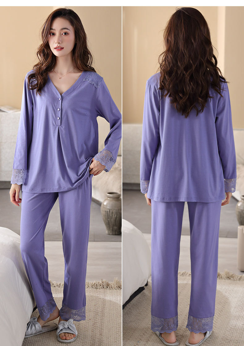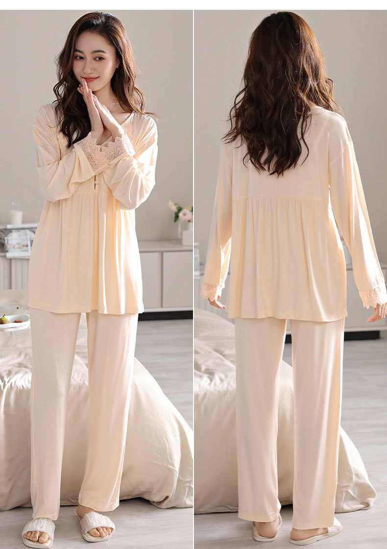 잠옷 여성의 봄과 가을 새로운 모데일면 긴팔 얇은 플러스 사이즈 카디건 실크 투피스 홈 의류 세트스토어 가기