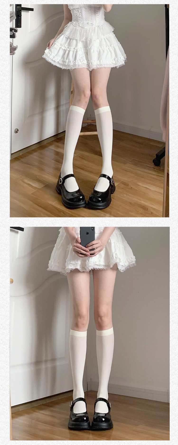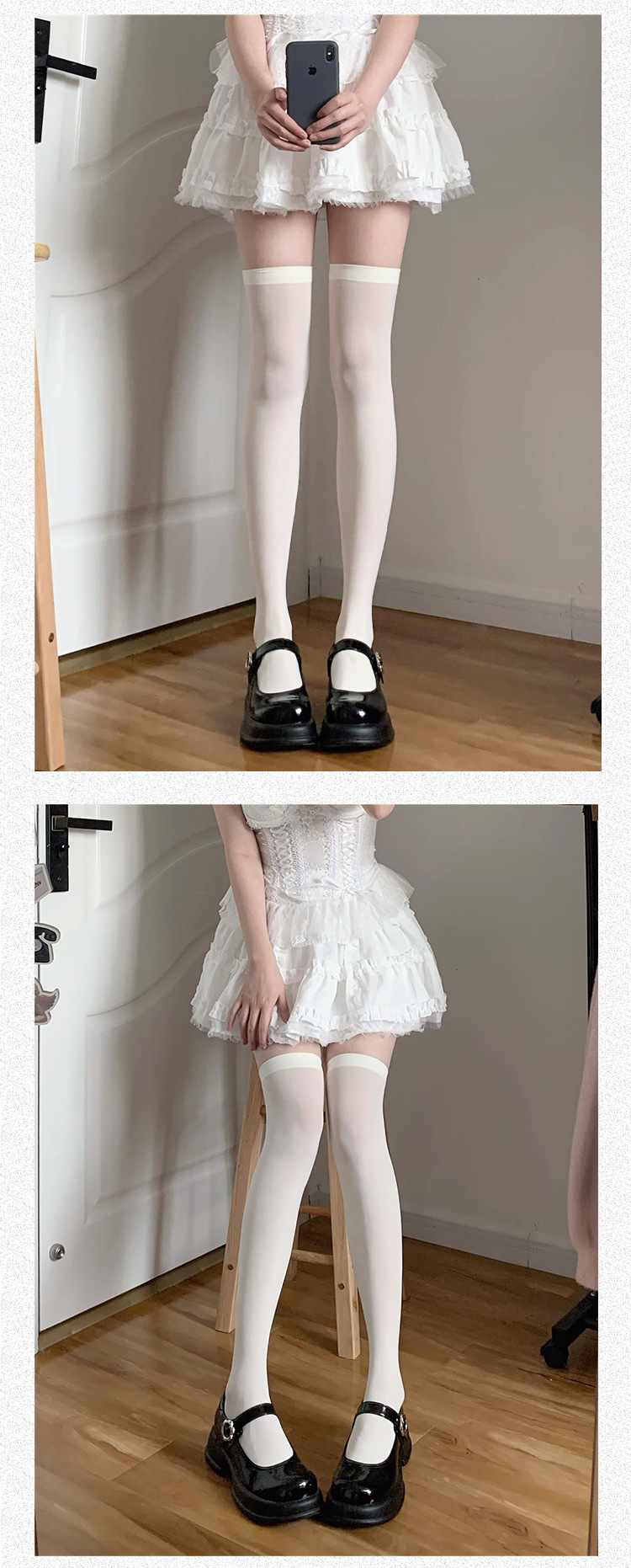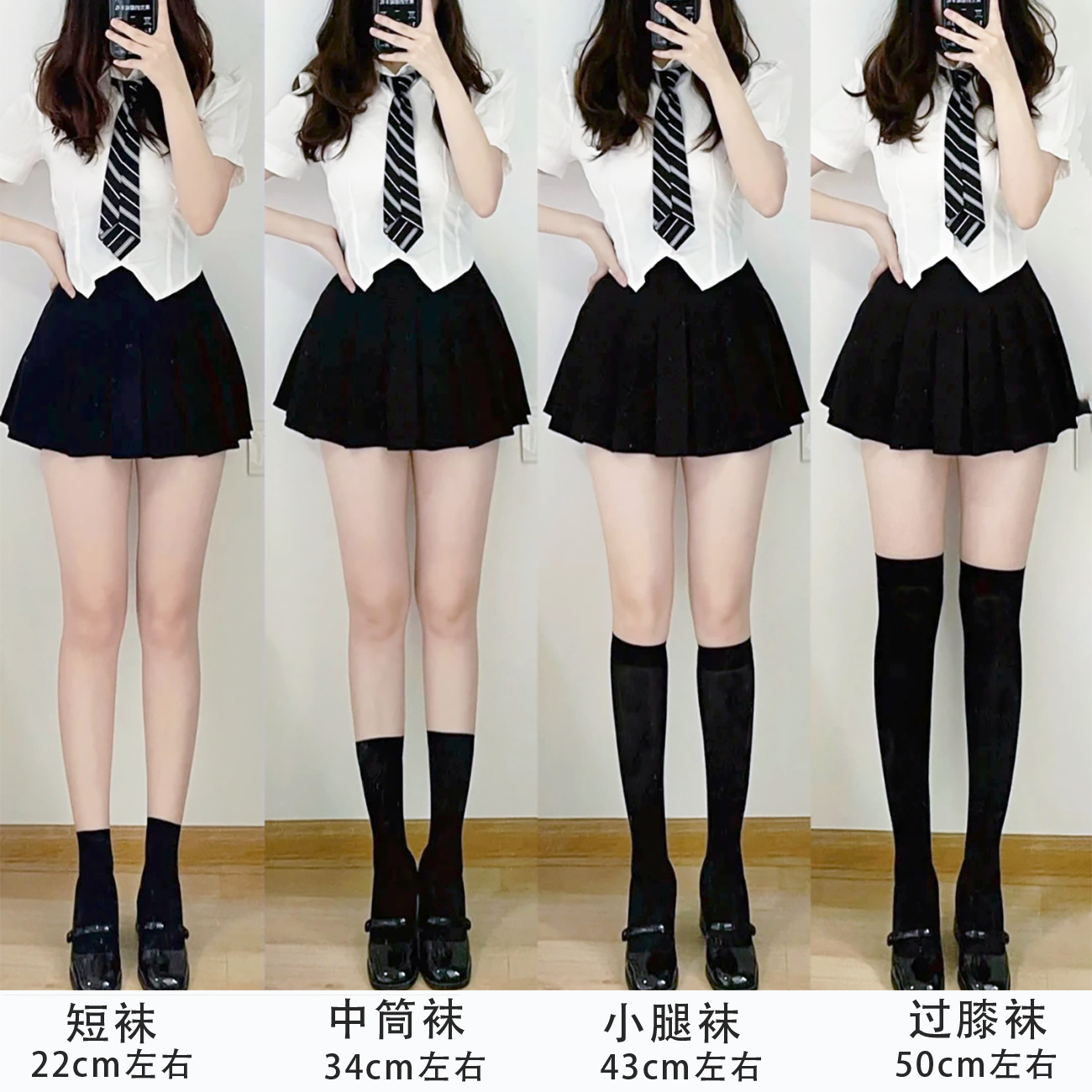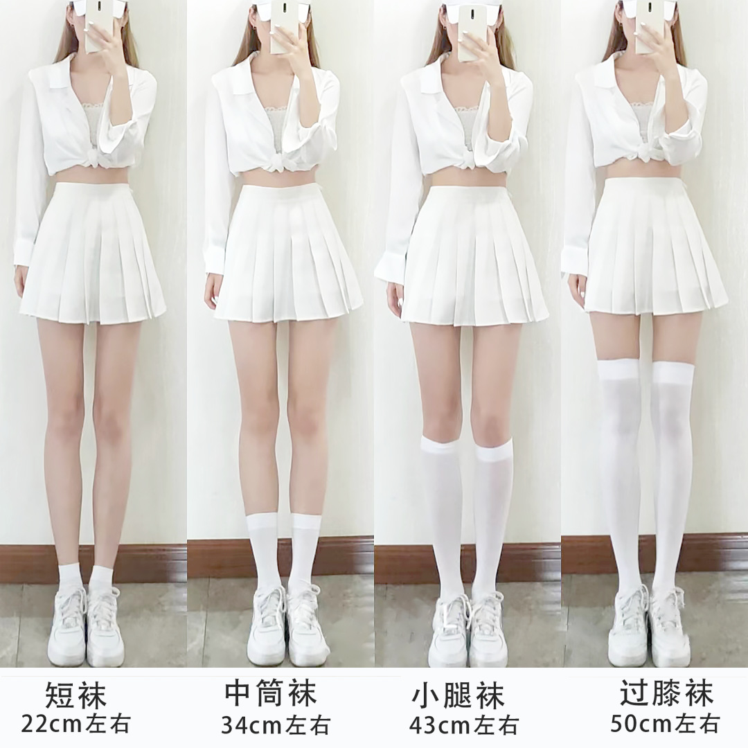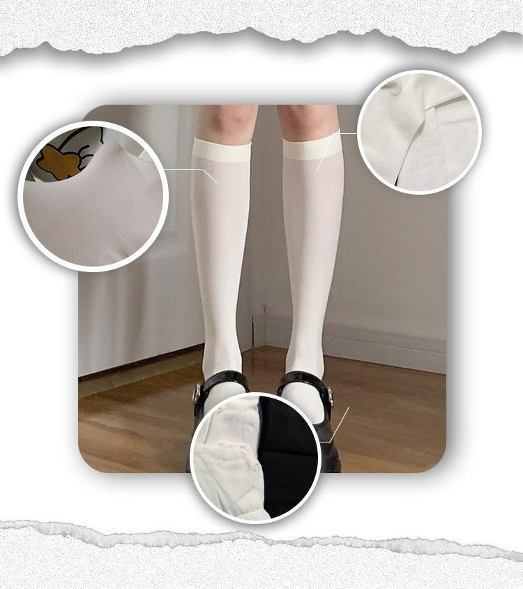 여름용 무지 얇은 JK 스타일 무릎 위 긴 양말, 로리타 화이트 벨벳 종아리 양말, 블랙 마이크로 압박 중간 길이 양말스토어 가기