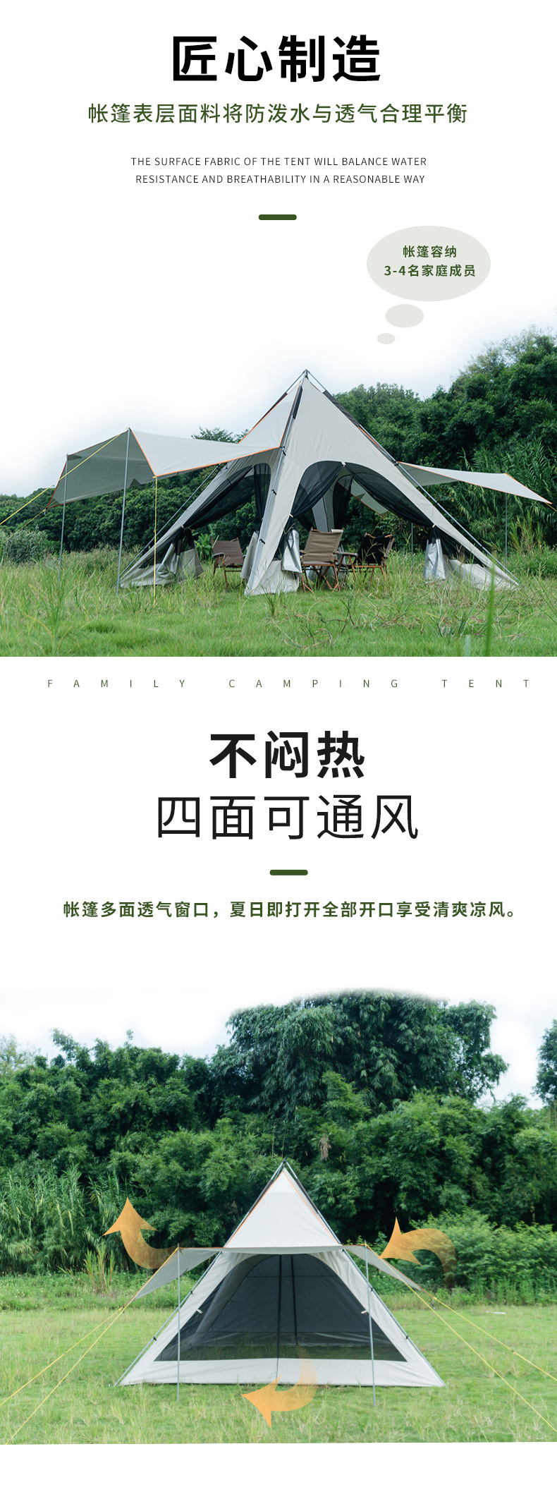 야외 텐트 캠핑 피라미드 캠핑 텐트 차양 앞 유리 비 텐트 차양 텐트 도매 발전스토어 가기