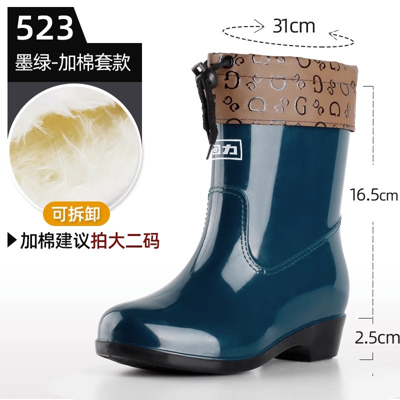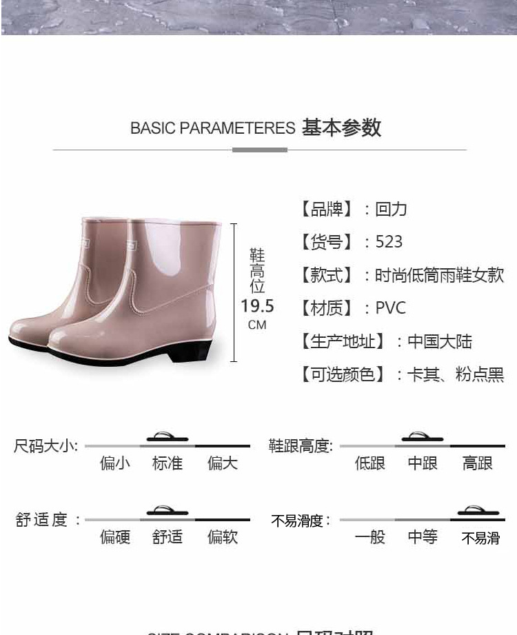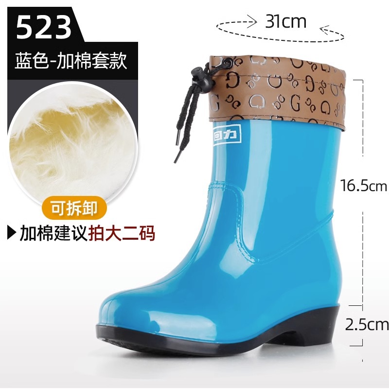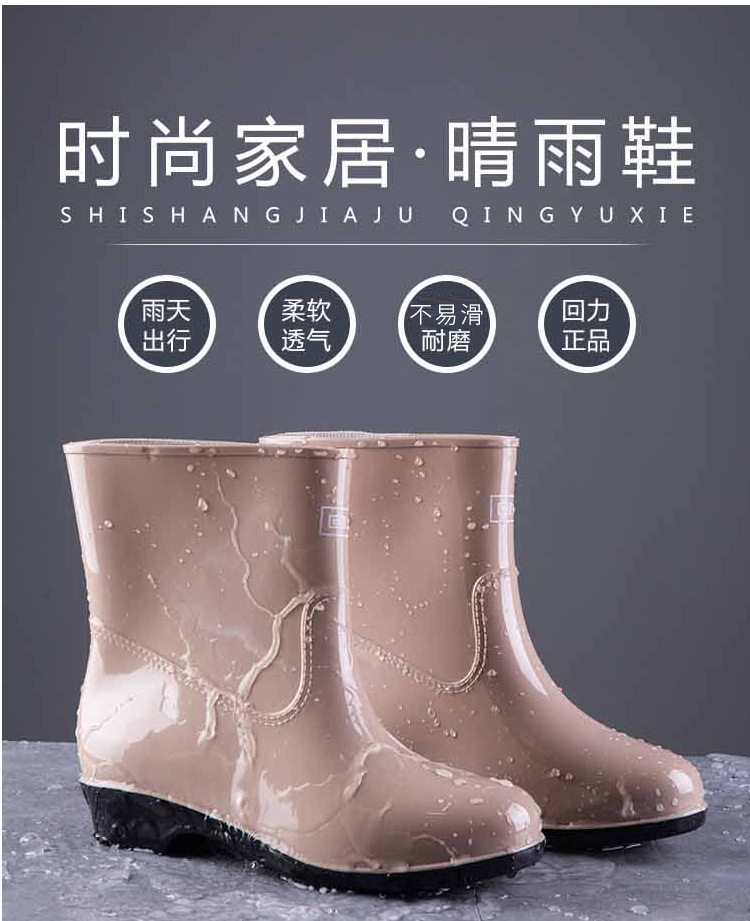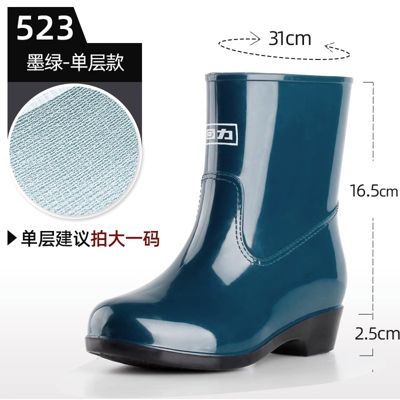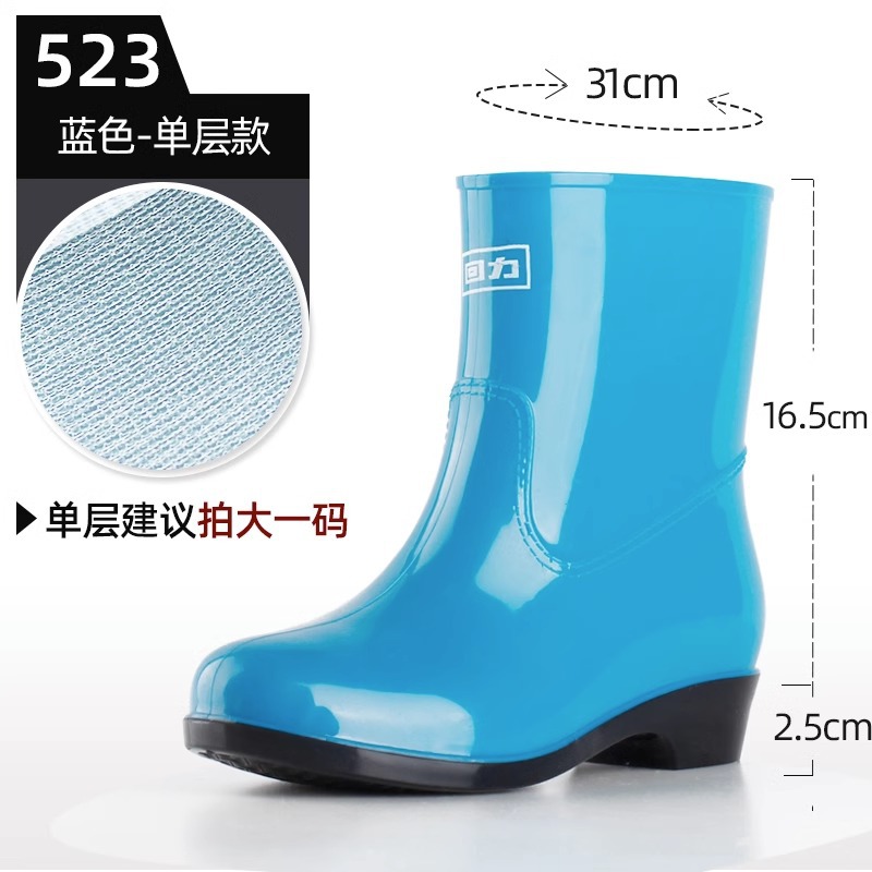 상하이 Huili 523 짧은 장화 여성용 방수 미끄럼 방지 PVC 내마모성 장화 플라스틱 낙하 방지 자동차 세척 신발스토어 가기