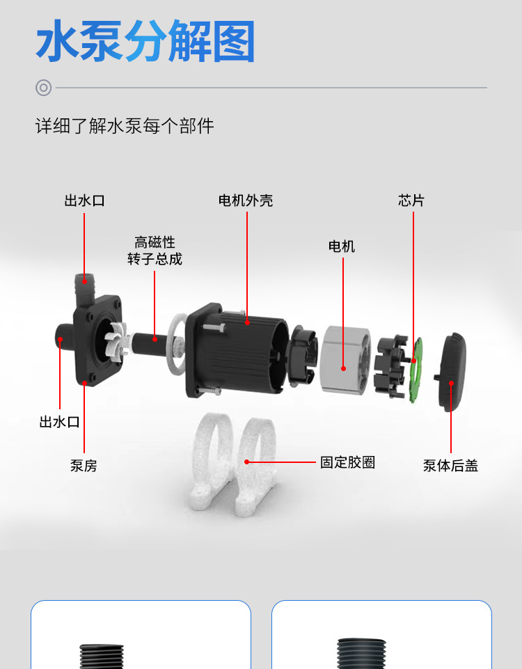 브러시리스 DC 수중 펌프 나일론 고온 저항 미용 기기 헤드 테라피 머신 12V 소형 펌프 소형 수중 펌프