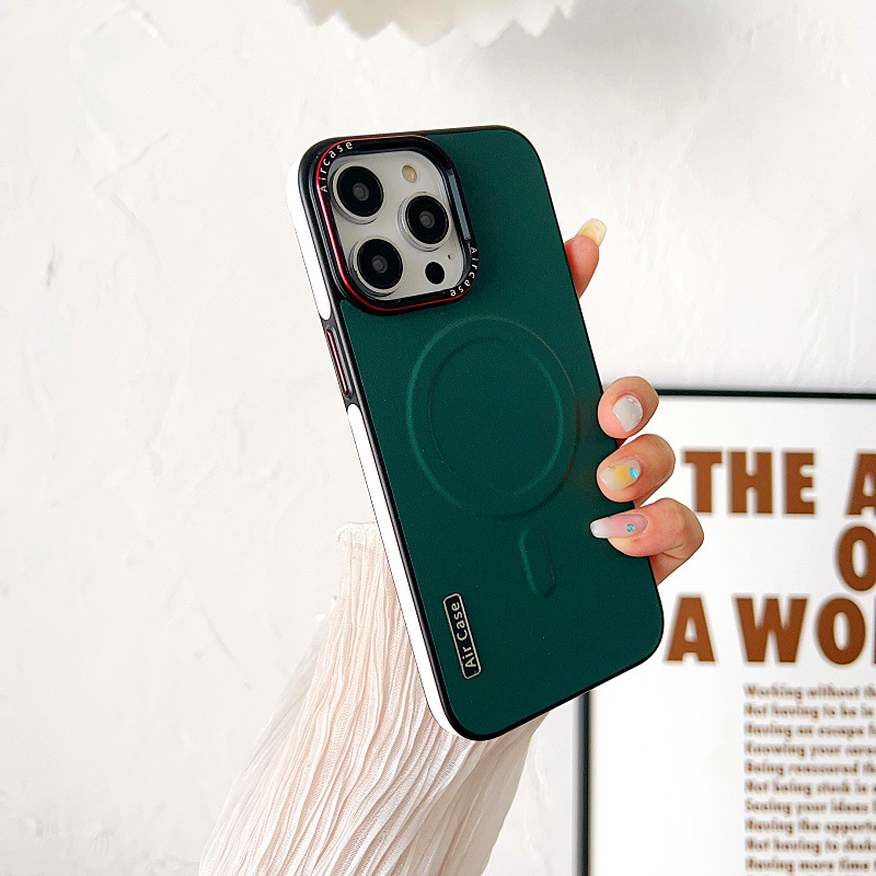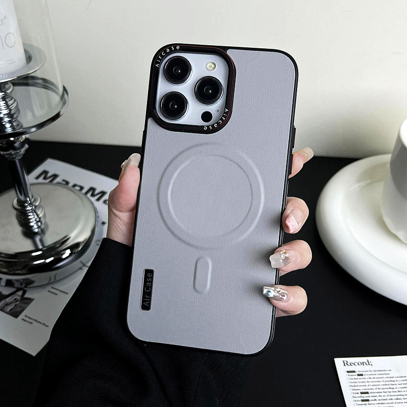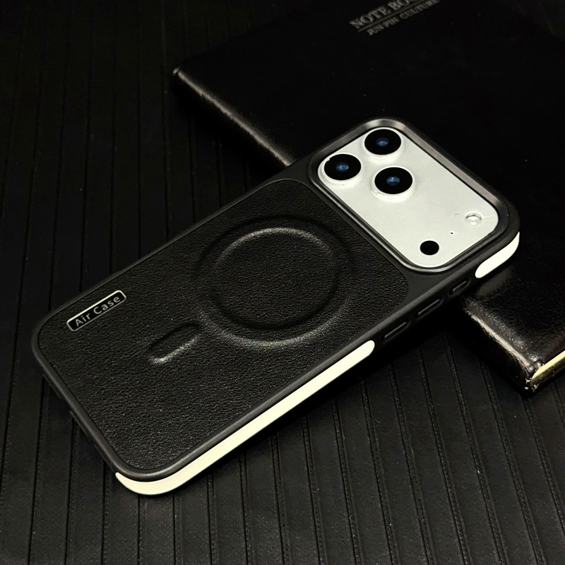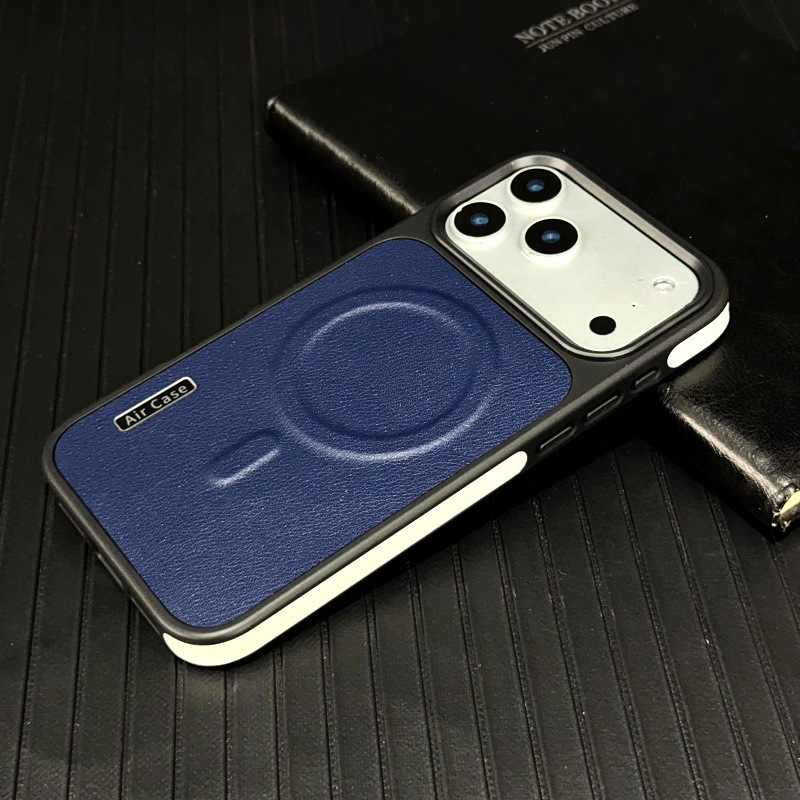 대비색 가죽 소재의 아이폰 17 프로맥스 케이스, 메탈 버튼, 마그네틱, 아이폰 16 낙하 방지 보호 케이스