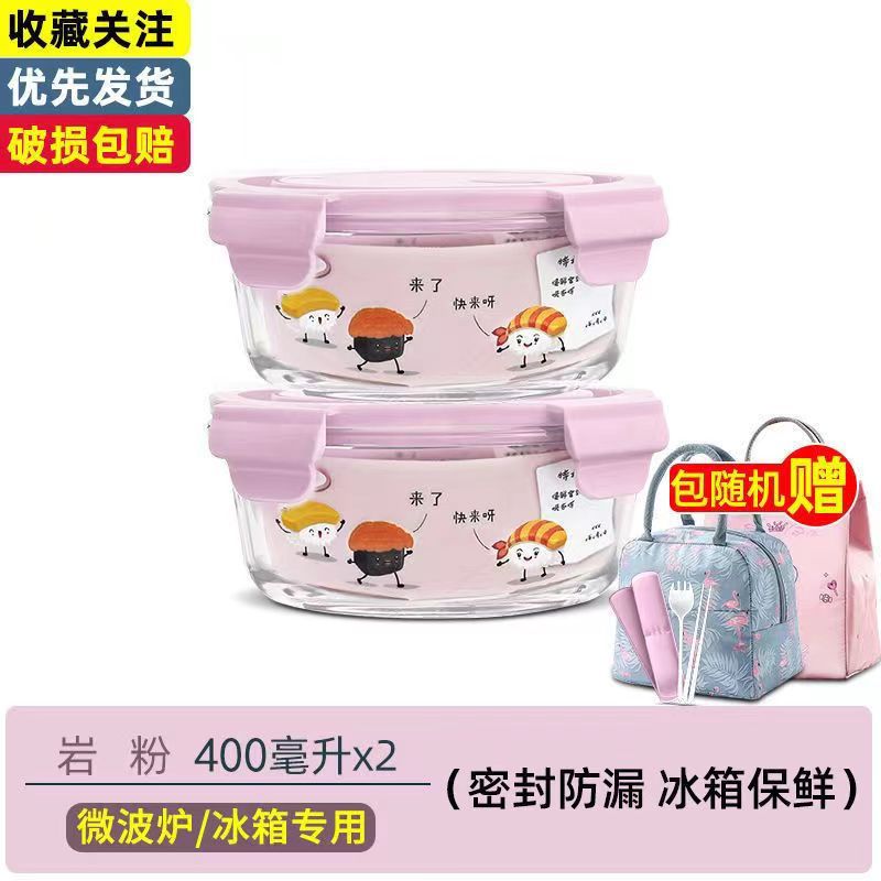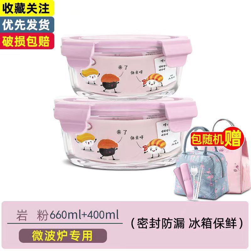 직장인을 위한 유리도시락, 전자레인지용 도시락, 학생 신선도 유지 분리형 도시락, 뚜껑이 있는 원형 도시락