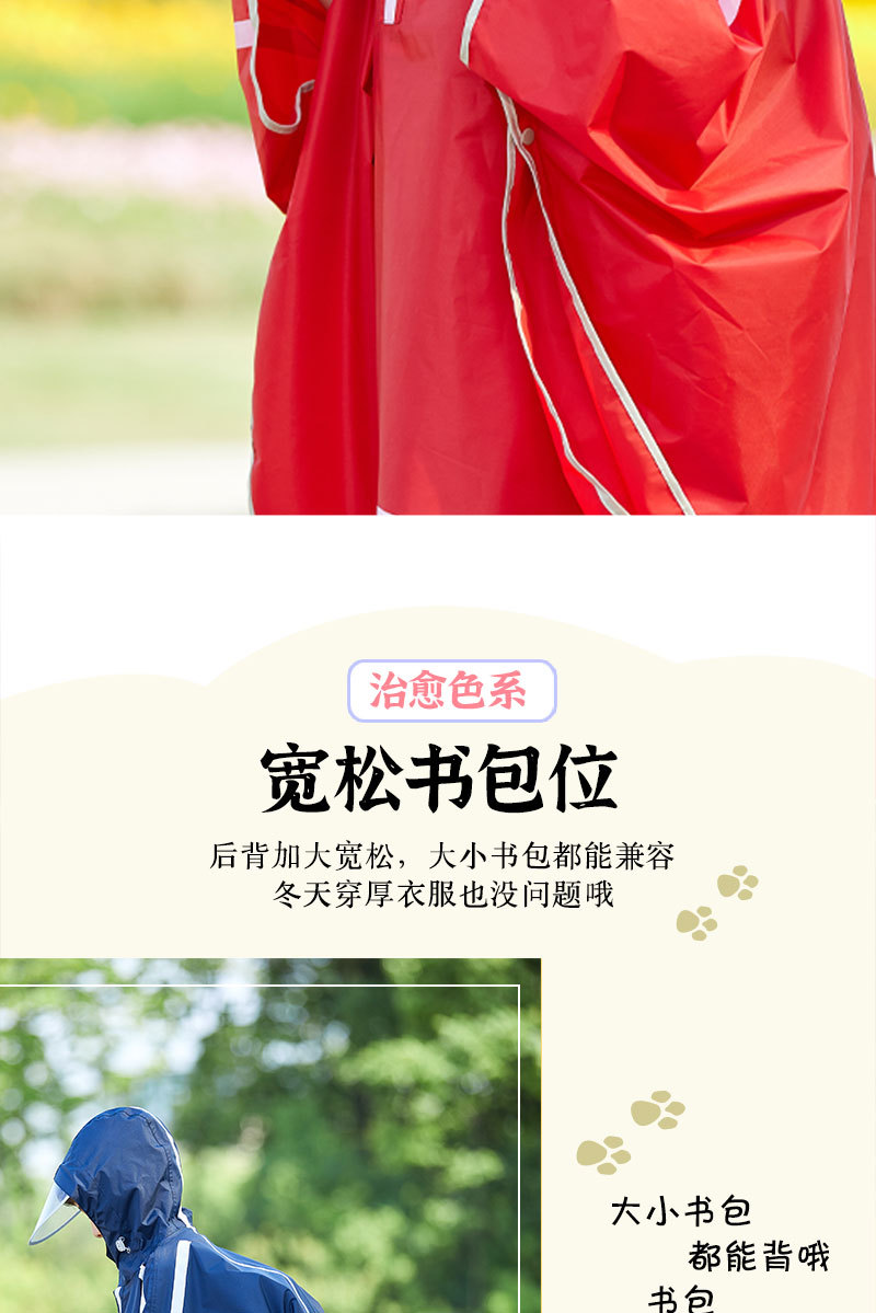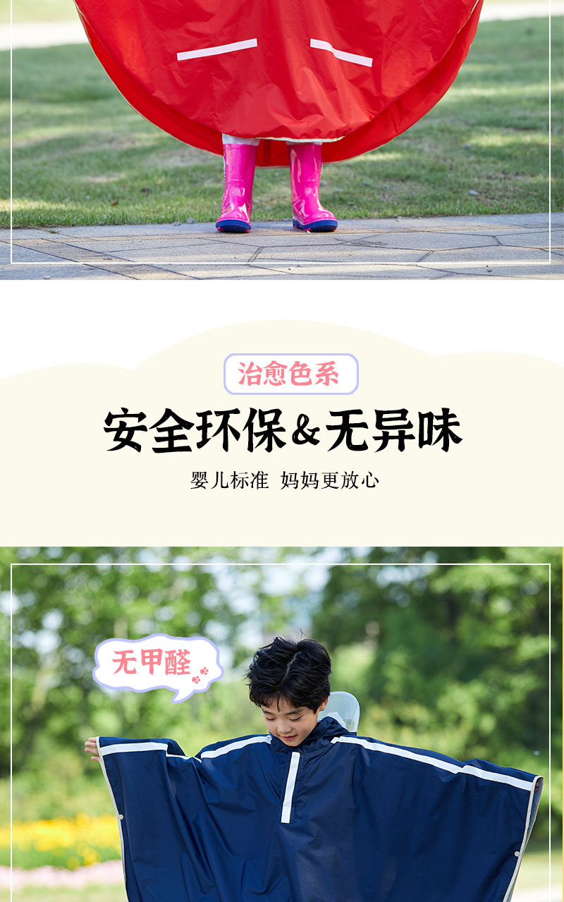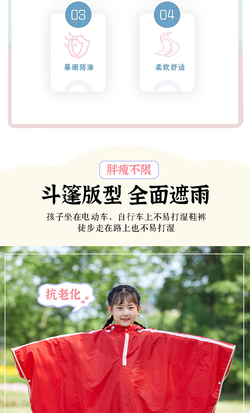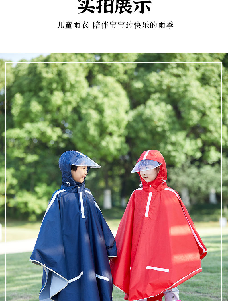 초중학생 판초 하이킹 자전거 대형 챙 반사 스트립 두꺼운 케이프 레인코트 공장 도매