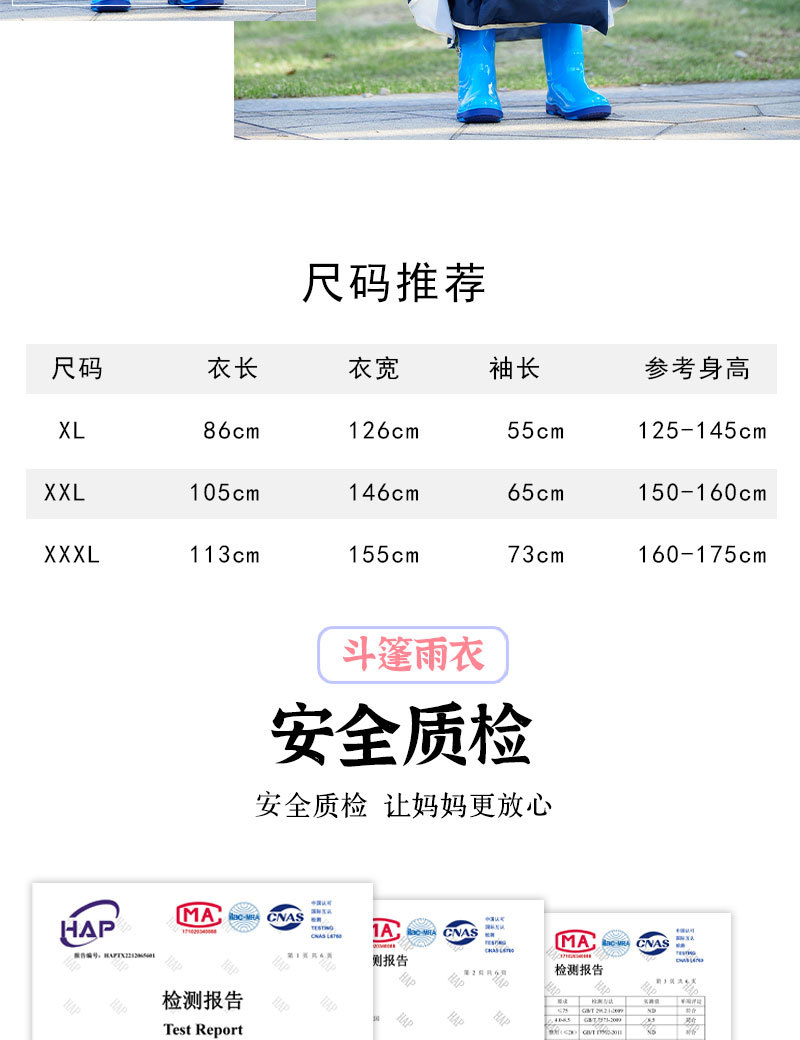 초중학생 판초 하이킹 자전거 대형 챙 반사 스트립 두꺼운 케이프 레인코트 공장 도매스토어 가기