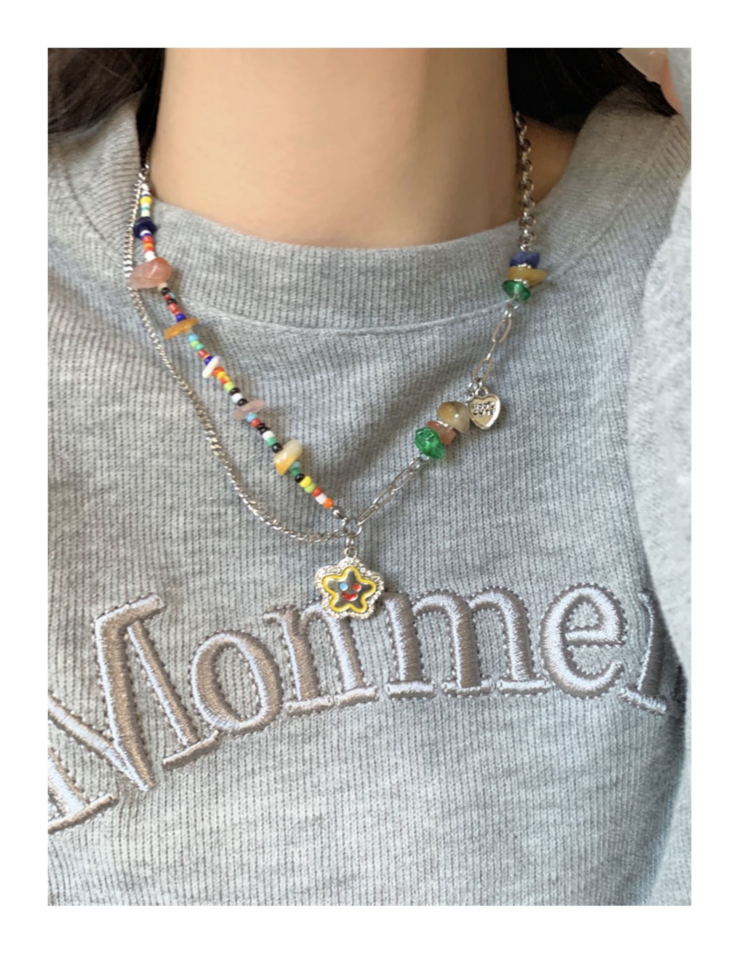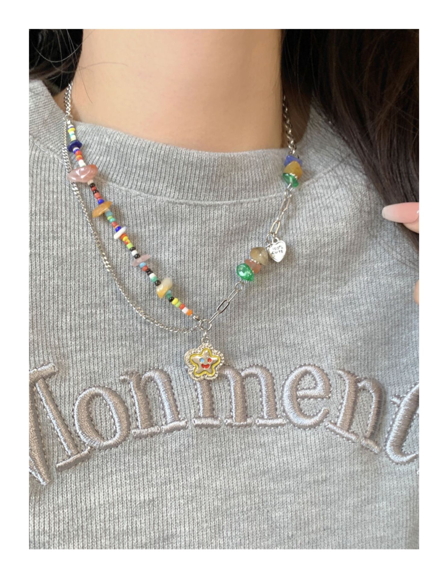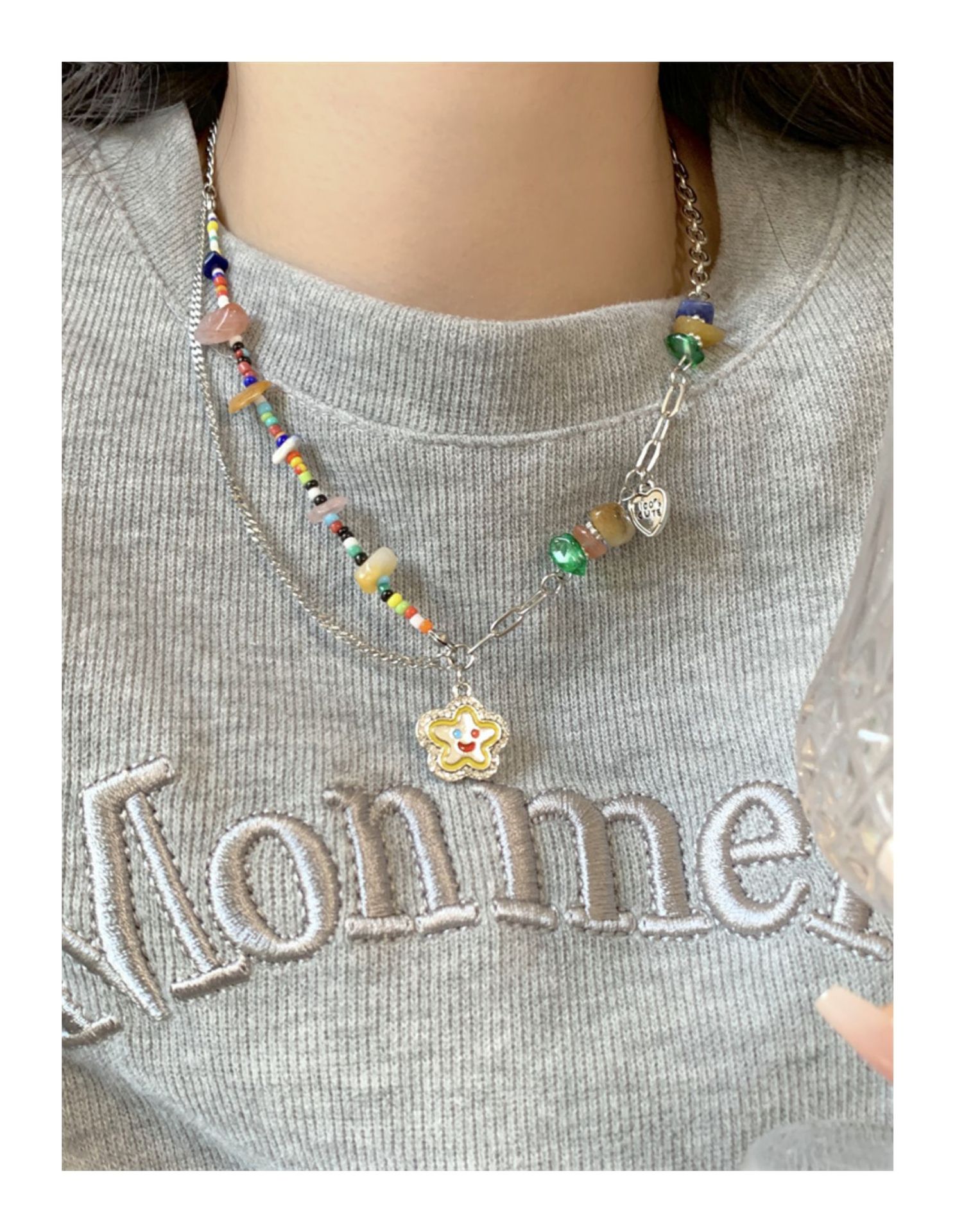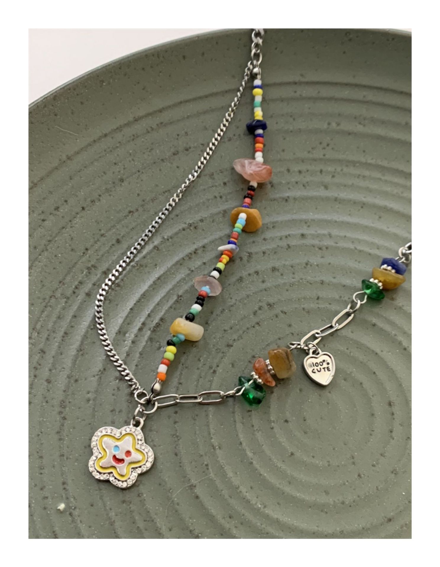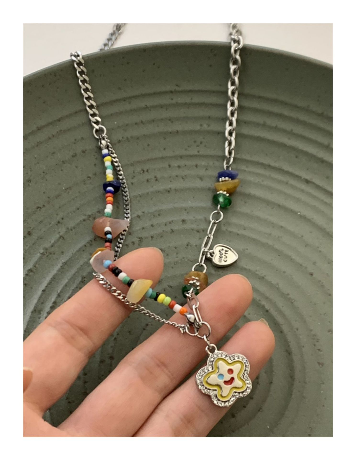 다채로운 페르시 웃는 얼굴 목걸이 여성의 가벼운 럭셔리 틈새 디자인 감각 Y2K 도파민 쇄골 체인 달콤한 멋진 사랑스토어 가기