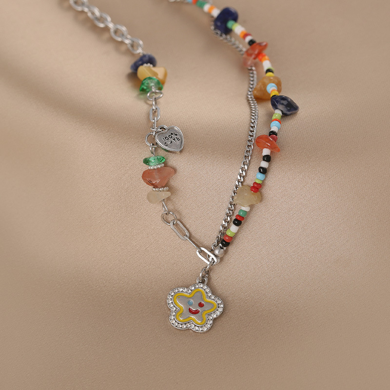 다채로운 페르시 웃는 얼굴 목걸이 여성의 가벼운 럭셔리 틈새 디자인 감각 Y2K 도파민 쇄골 체인 달콤한 멋진 사랑