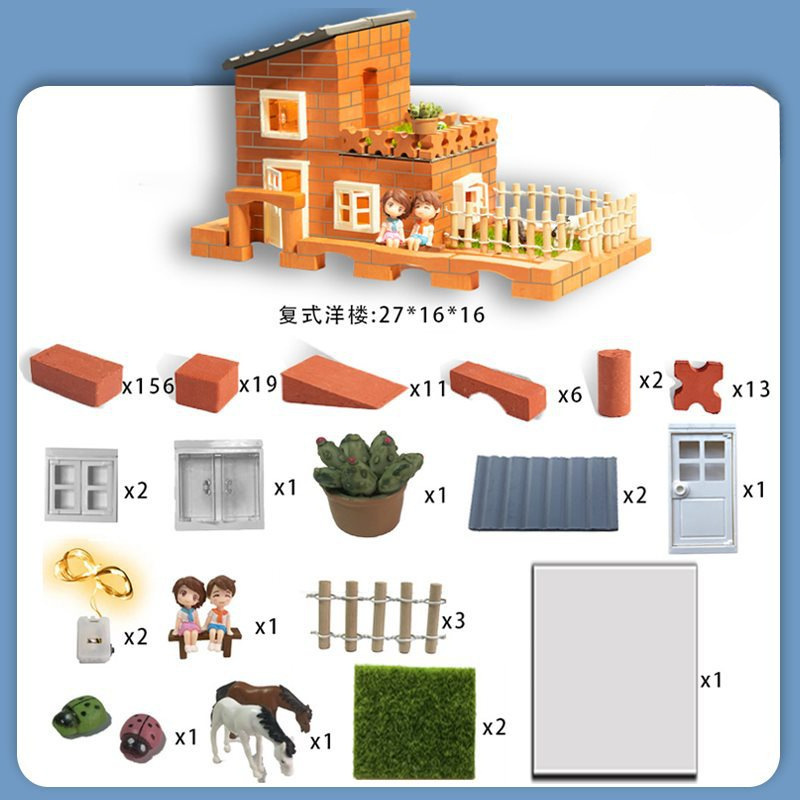 미니 작은 벽돌 대화 형 녹색 벽돌 어린이 실제 커버 작은 집 클레이 클레이 클레이 클레이 클레이 메이커 수제 벽돌 diy