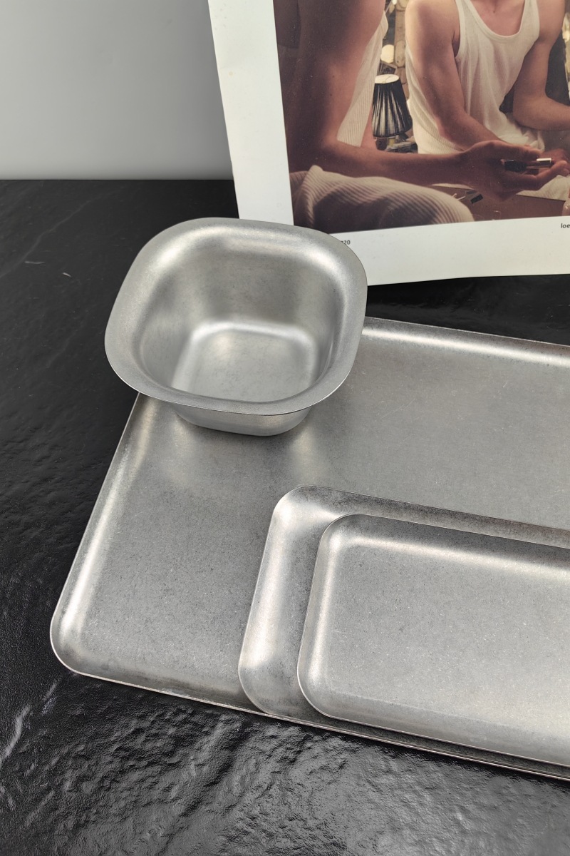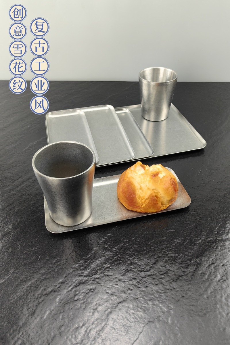 스테인레스 스틸 눈 패턴 식기 사용 산업 스타일 바베큐 플레이트 직사각형 직선 가장자리 플레이트 스테이크 플레이트 베이킹 플레이트 트레이스토어 가기