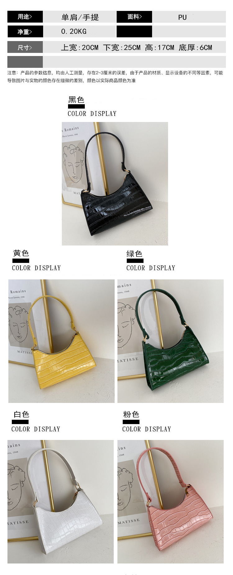 패션 여성 가방 2024 새로운 한국판 작은 신선한 겨드랑이 가방 악어 패턴 복고풍 성격 어깨 핸드백 도매스토어 가기