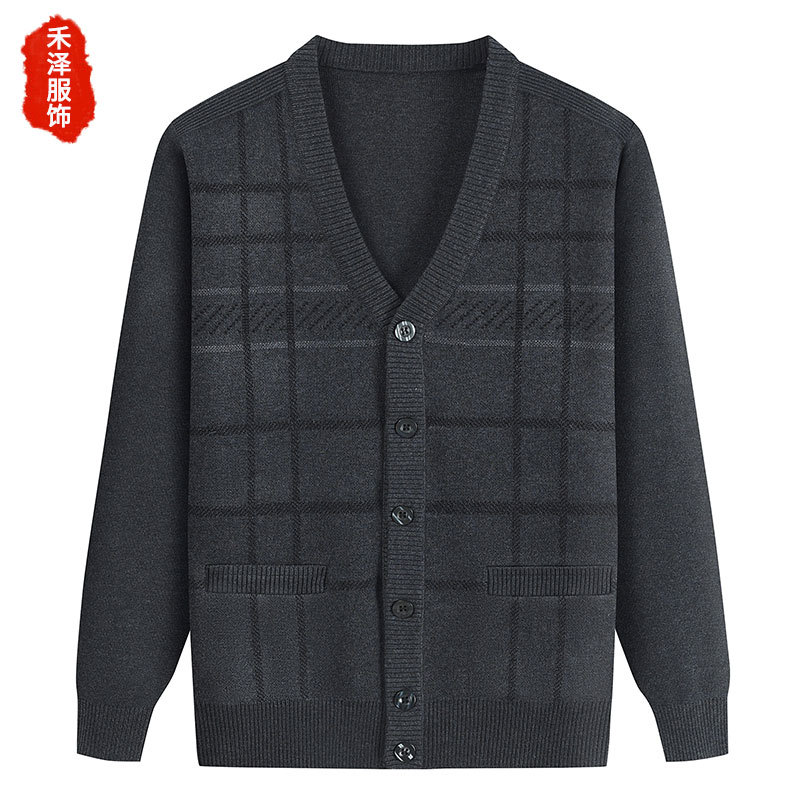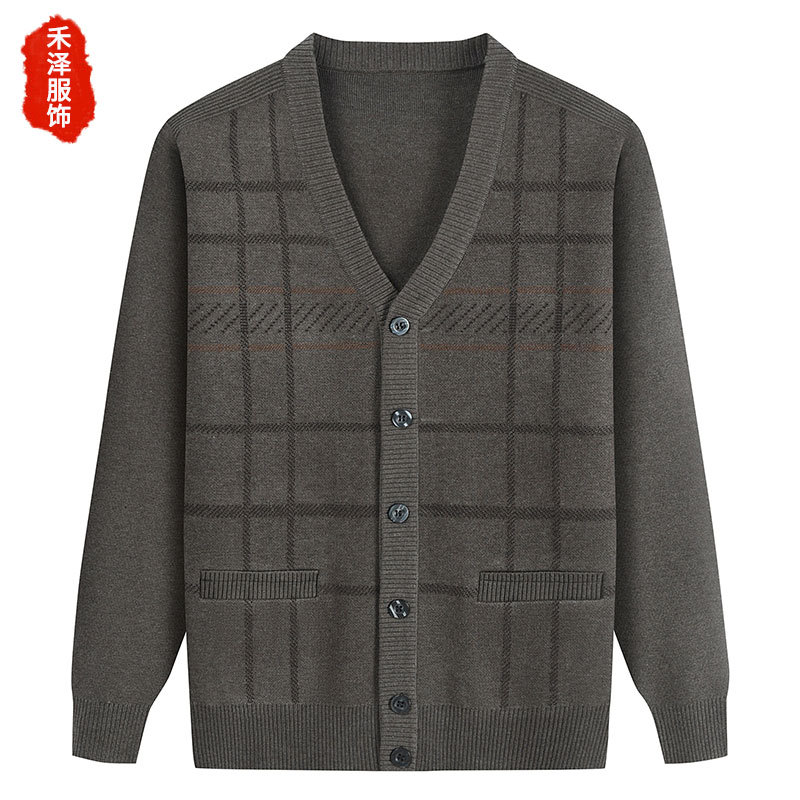 중년 및 노인 아버지 가을과 겨울 코트 카디건 스웨터 남자 아빠 스웨터 최고 할아버지 캐주얼 옷스토어 가기