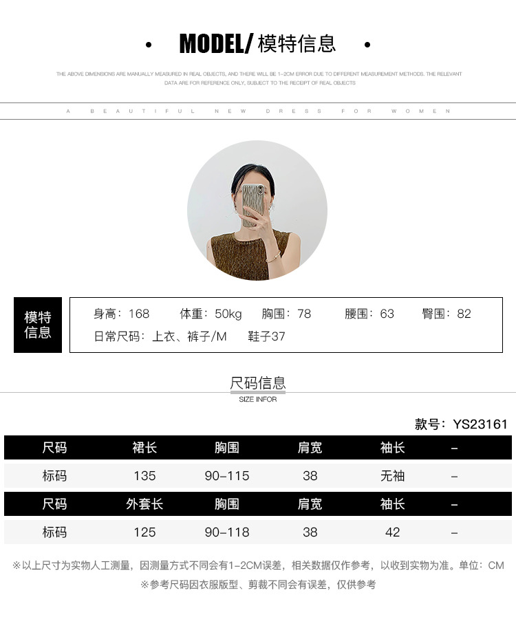 플리츠 목도리 + 롱 조끼 스커트 세트 2023 가을 새로운 금실 긴 투피스 대외 무역 여성 의류