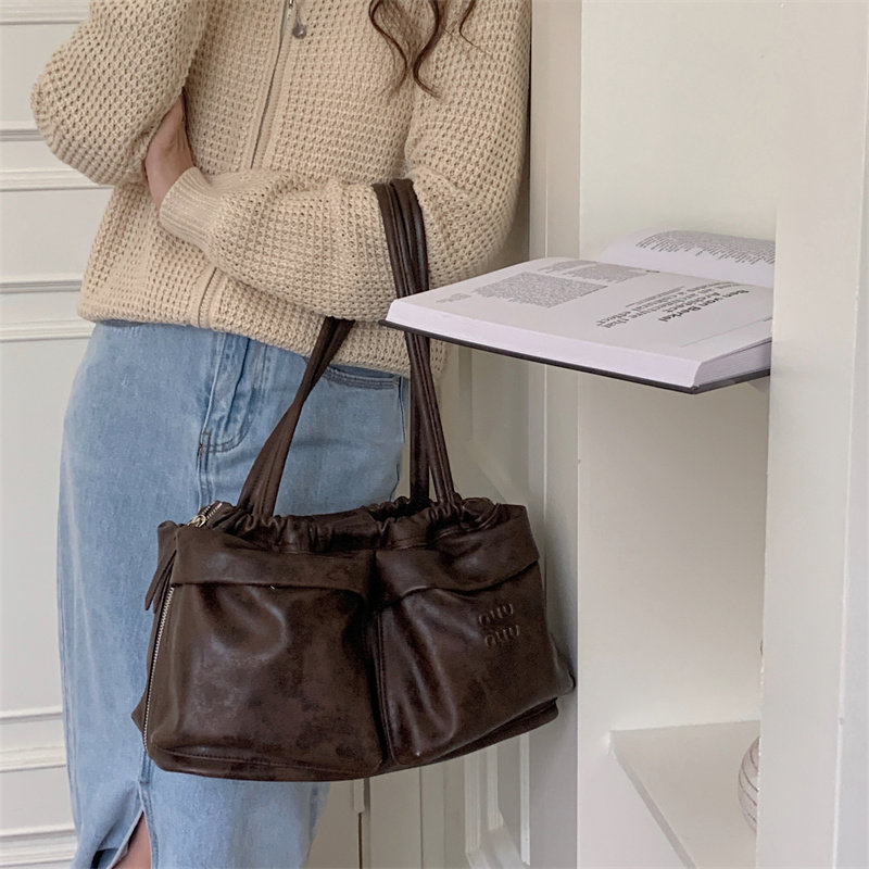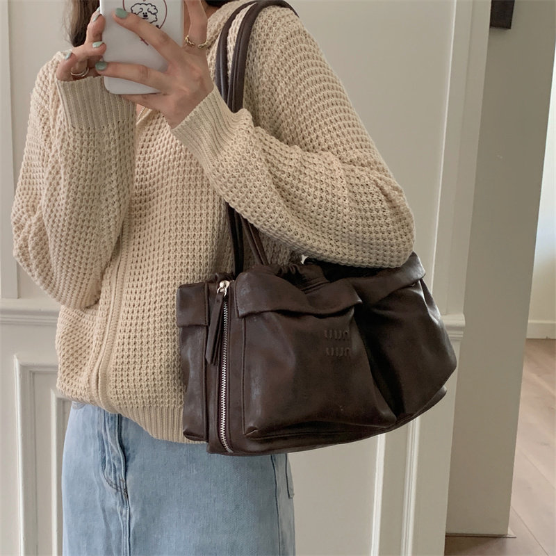 2023 신상품 프랑스 스타일 라이트 럭셔리 캐주얼 멀티 포켓 숄더백 여성용 부드러운 가죽 유행 휴대용 토트백스토어 가기