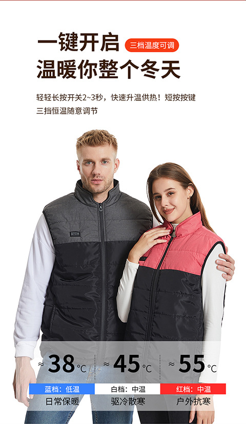 소녀들을위한 난방 조끼가있는 남성과 여성을위한 새로운 색상 매칭 지능형 난방 조끼 전기 난방 조끼스토어 가기