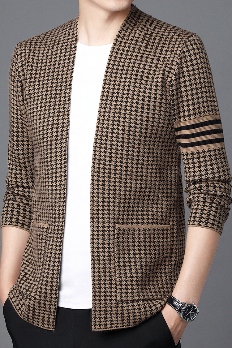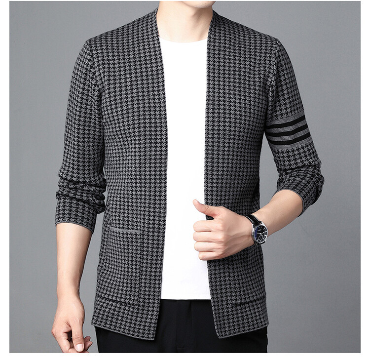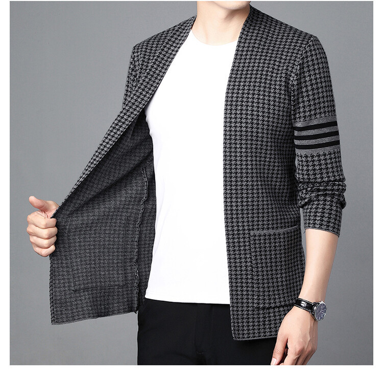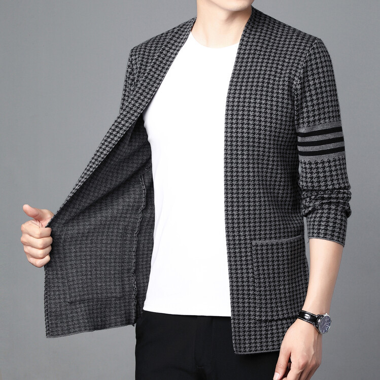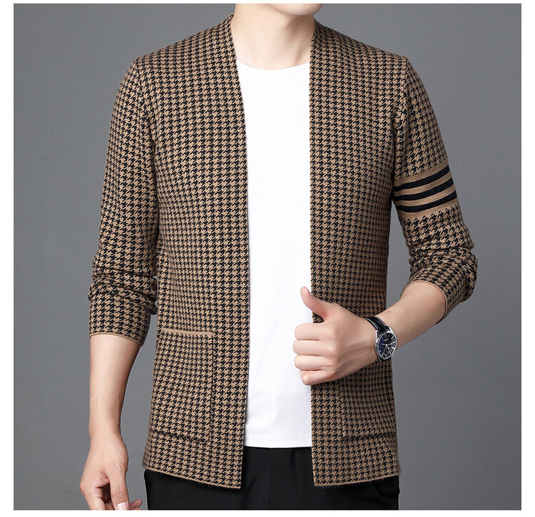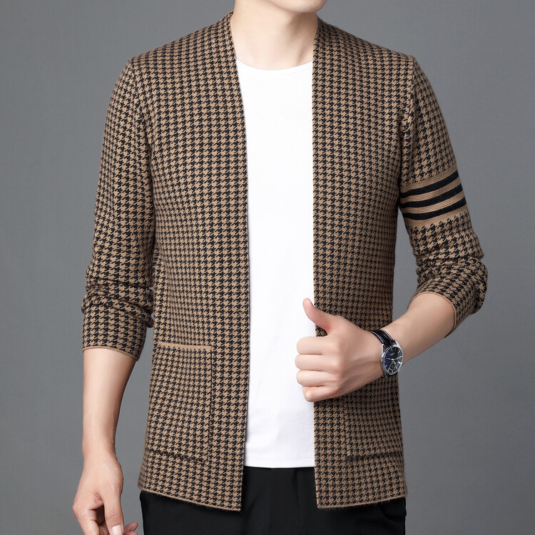고급 남성 봄과 가을 새로운 스웨터 카디건 코트 한국식 하운드투스 캐주얼 다용도 중년