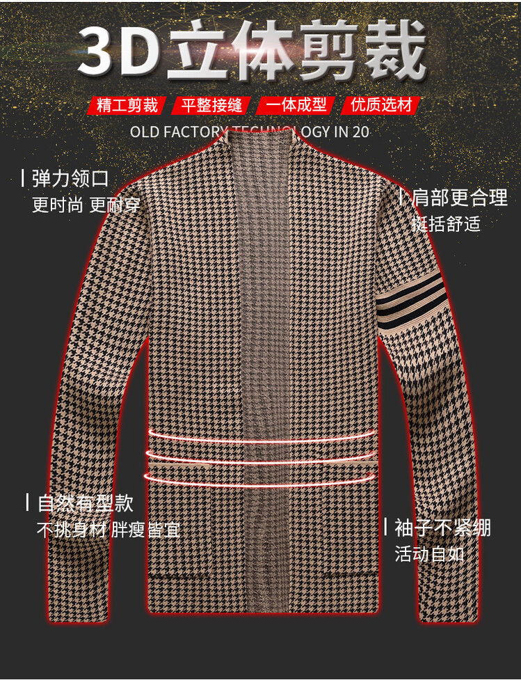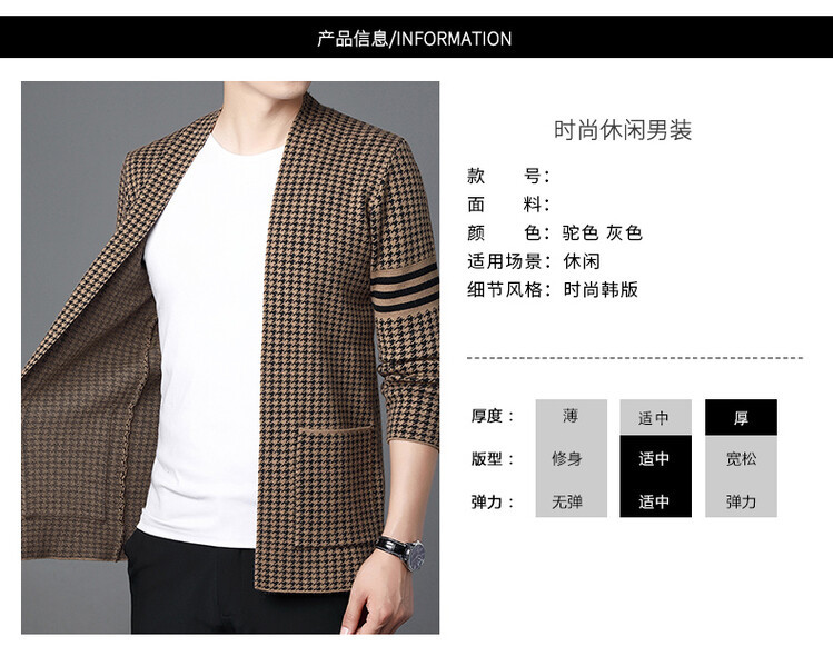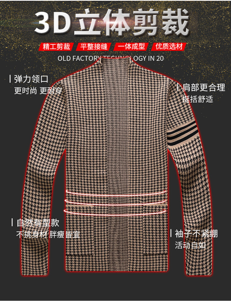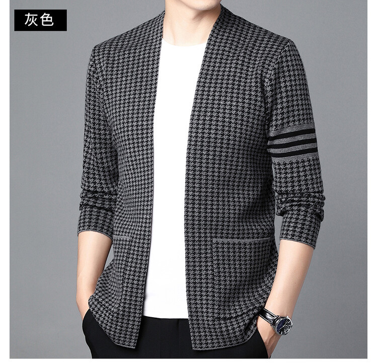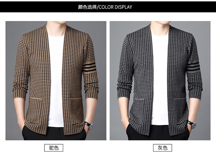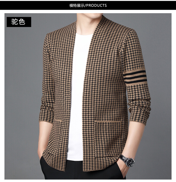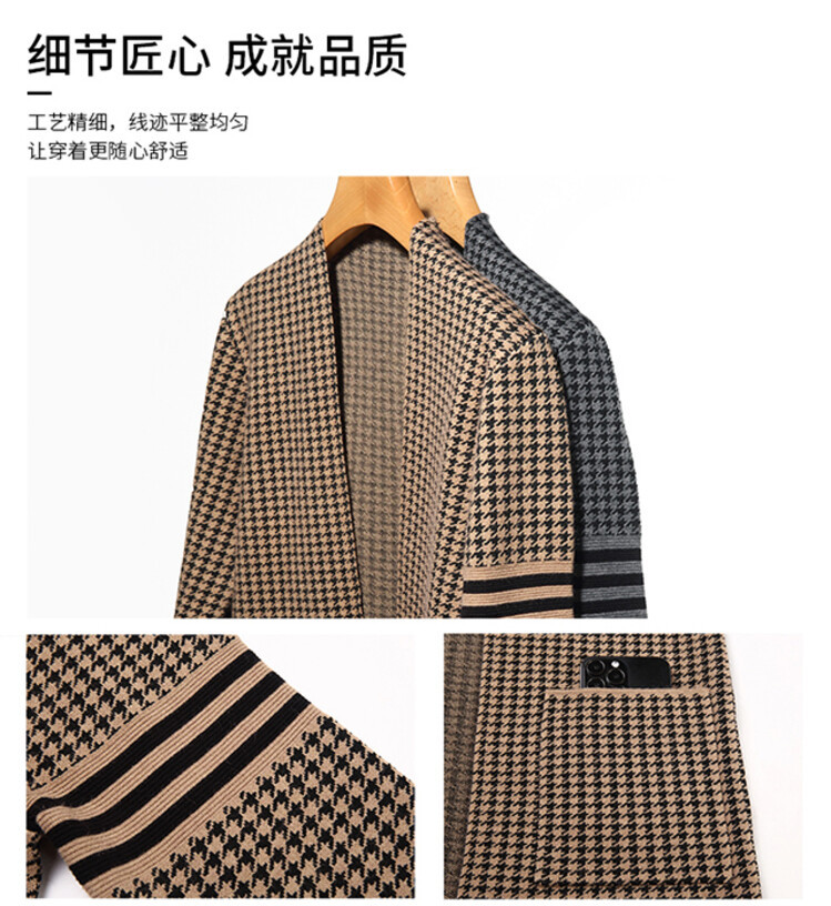 고급 남성 봄과 가을 새로운 스웨터 카디건 코트 한국식 하운드투스 캐주얼 다용도 중년스토어 가기