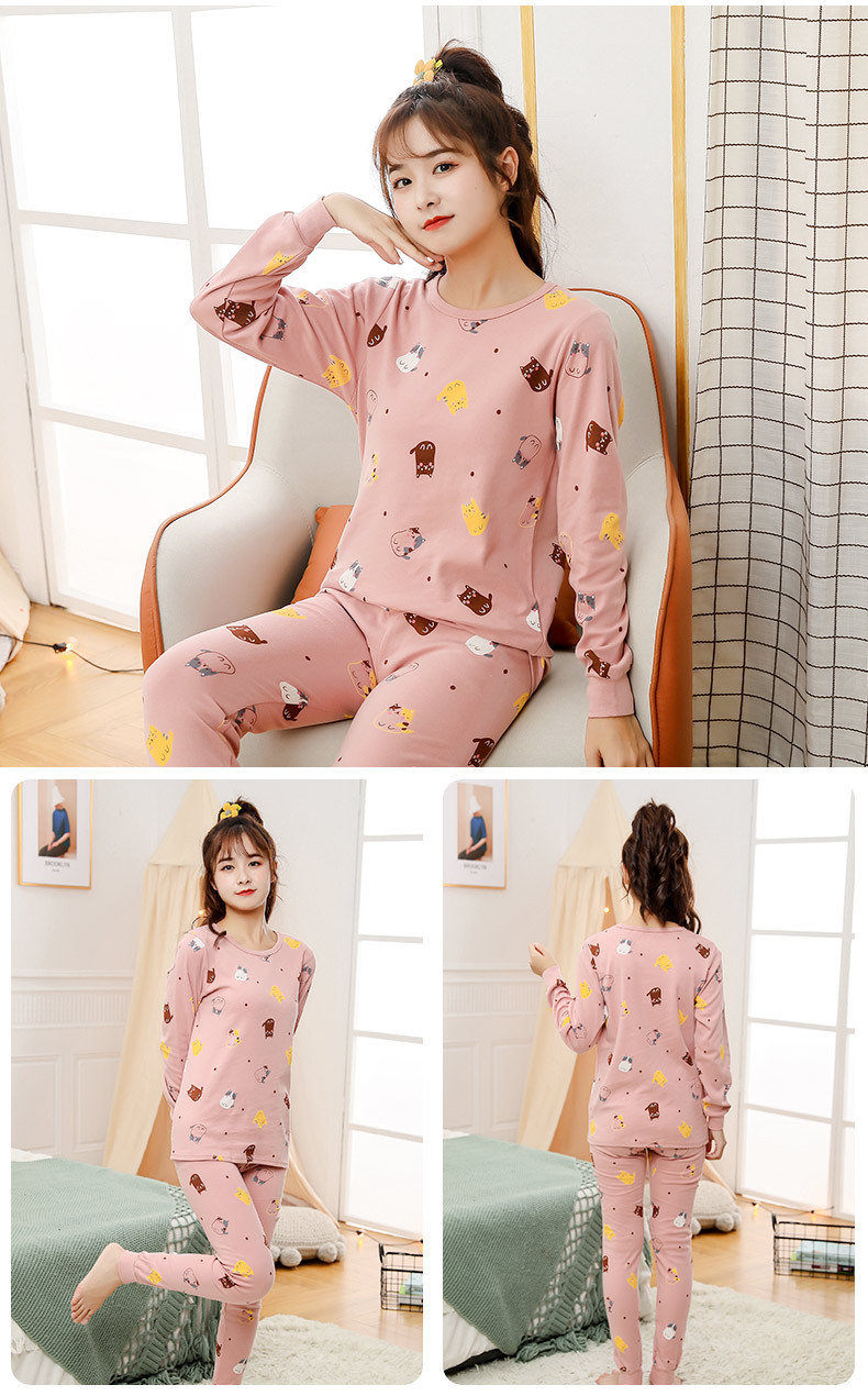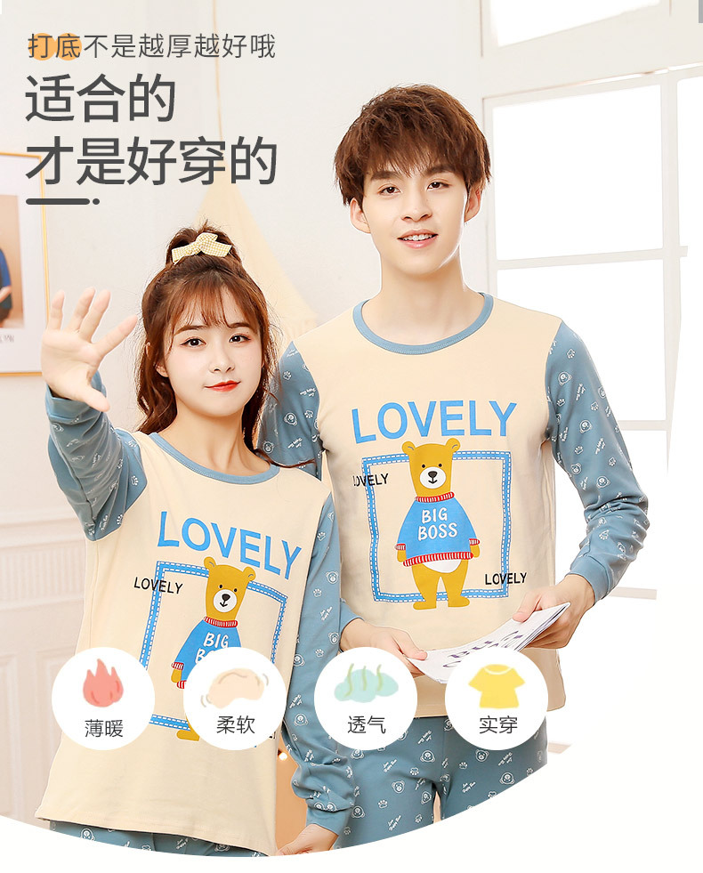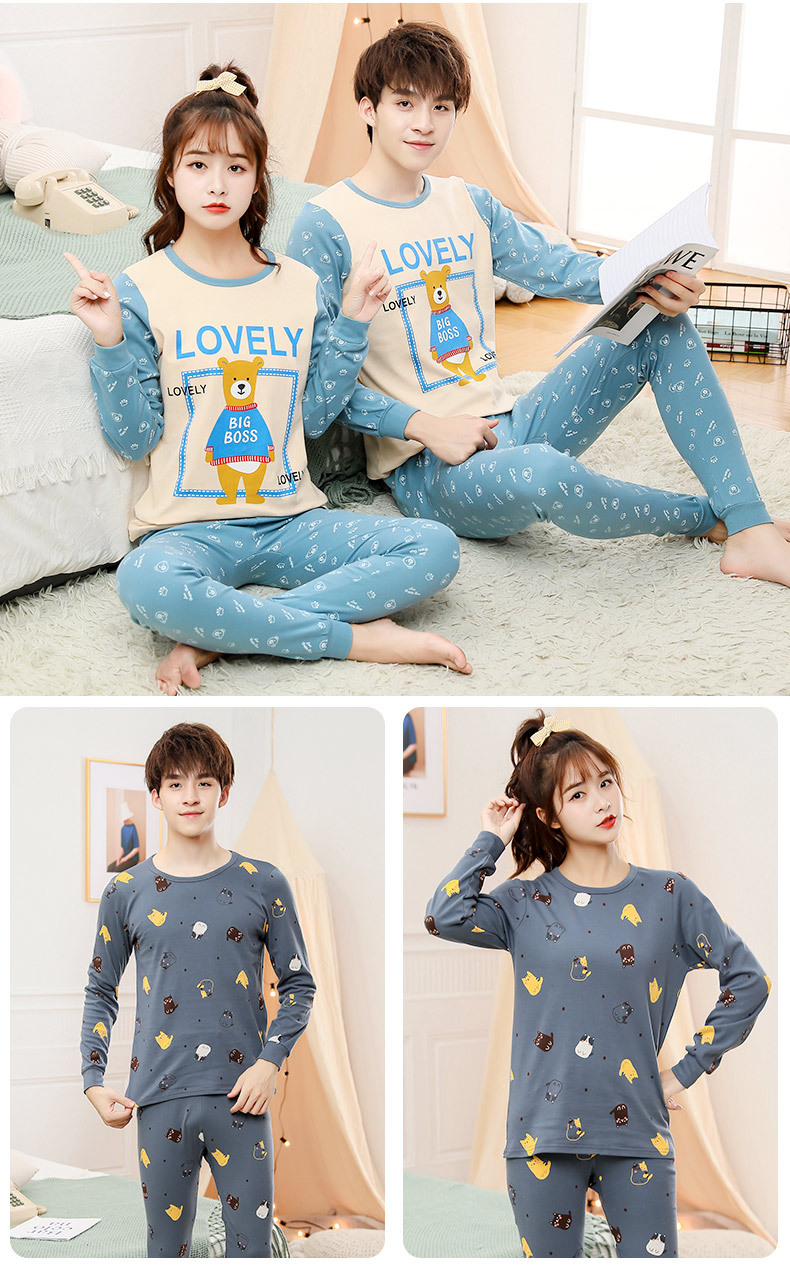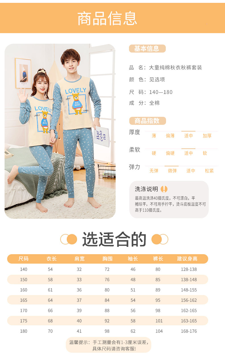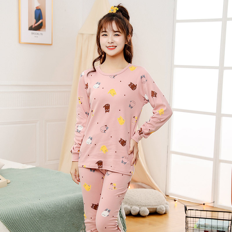 가을과 겨울 세트 큰 어린이 면 속옷 따뜻한 가정복 중학교 및 고등학교 학생 기본 면 스웨터 클래스 A 잠옷스토어 가기