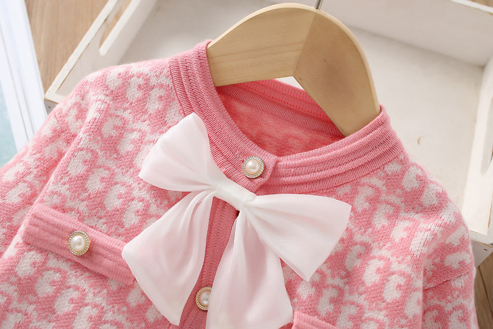 2023 가을/겨울 세트 여아 스웨터 새로운 서양 스타일 샤넬 스타일 긴 소매 활 어린이 공주 스커트 투피스 세트