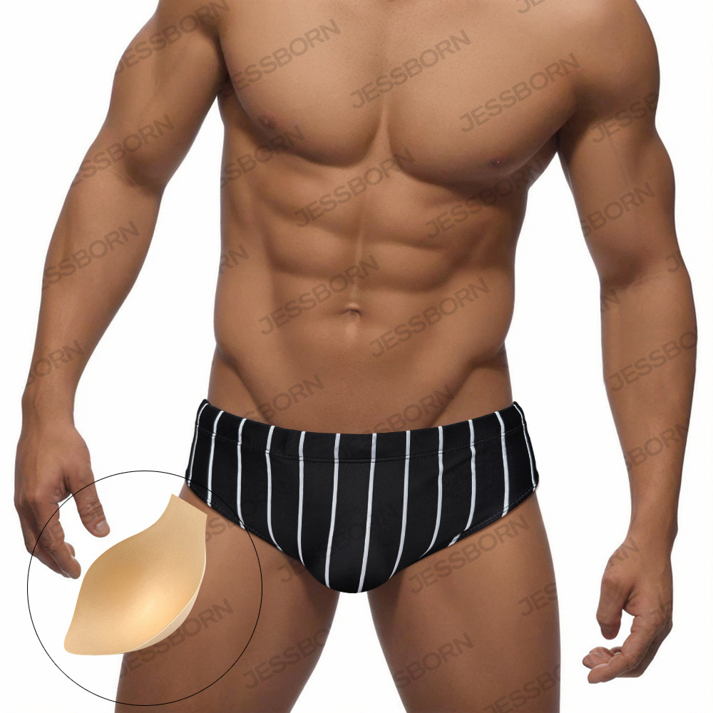 JESSBORN 남자 컵 안티 라이트 수영 트렁크 낮은 허리 섹시한 온천 비치 브리프 전문 훈련 반바지