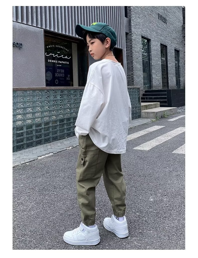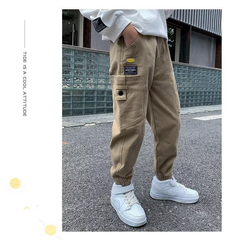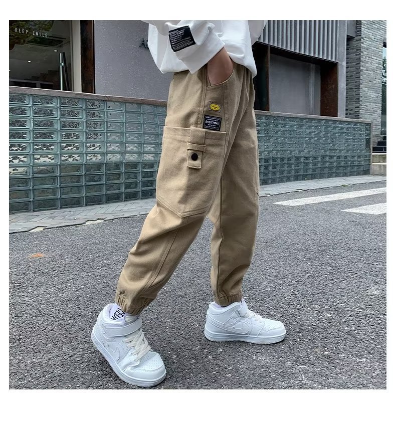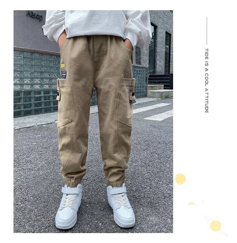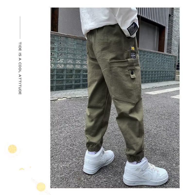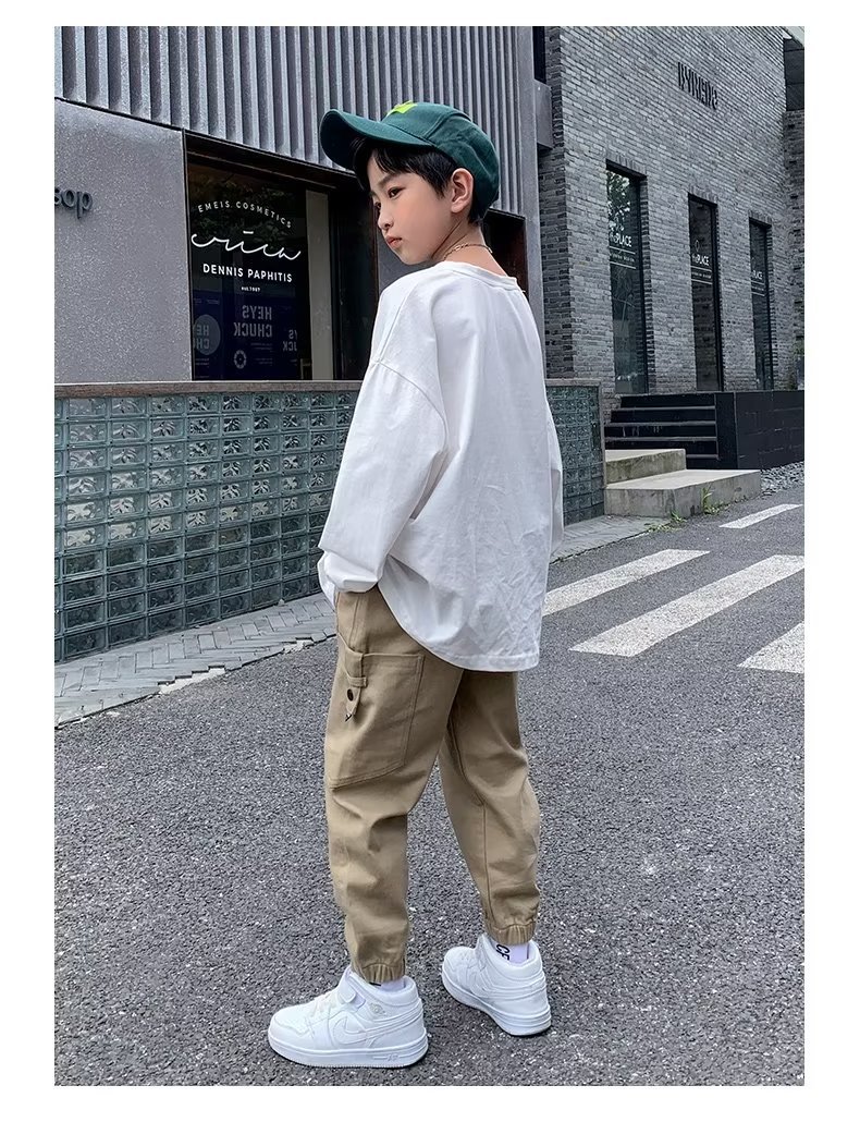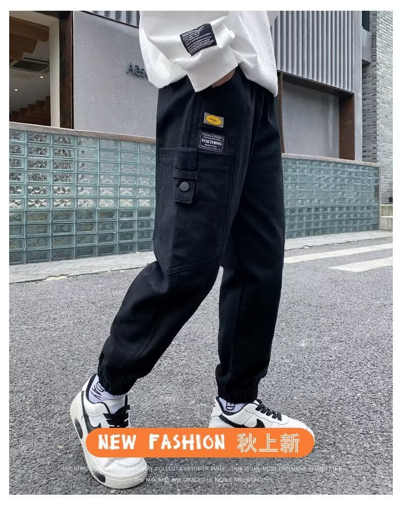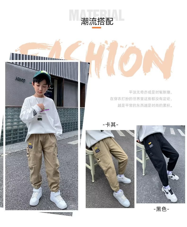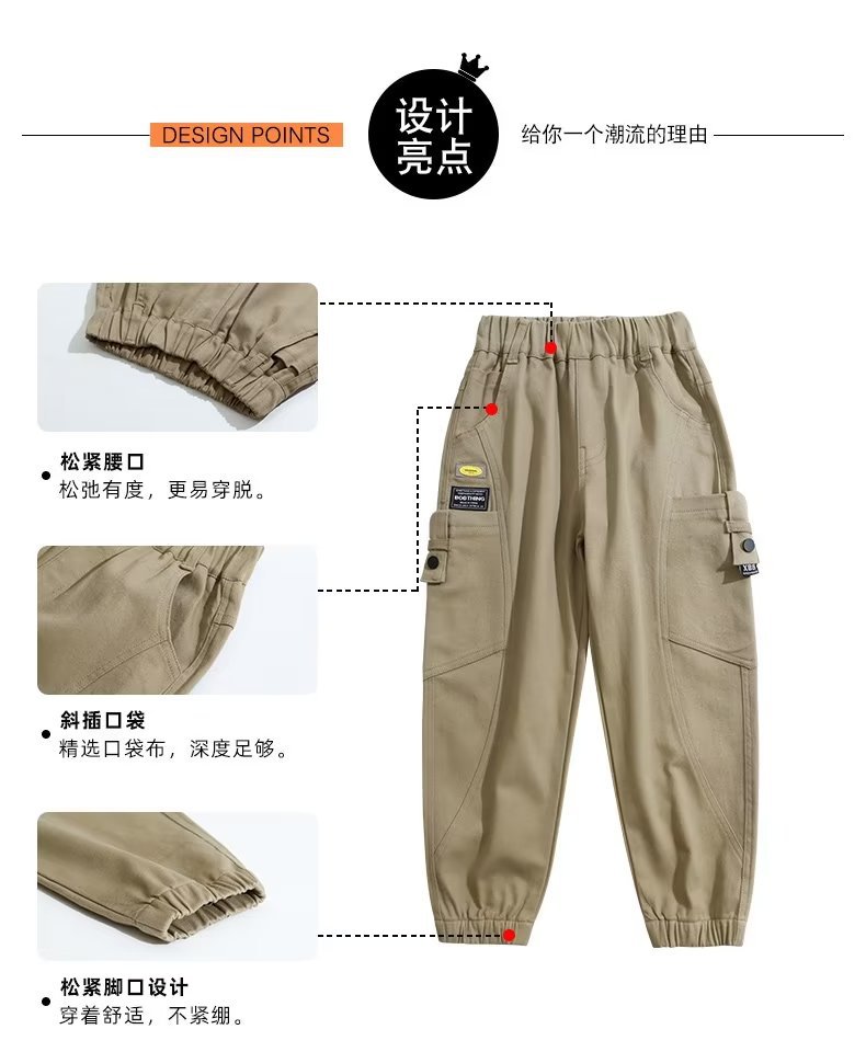 2025년 신상 남아 봄가을 바지 긴바지 포켓 작업복 바지 캐주얼 스포츠 중대형 아동 가을 패션 바지스토어 가기