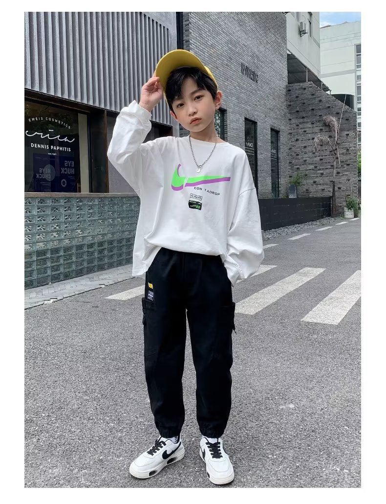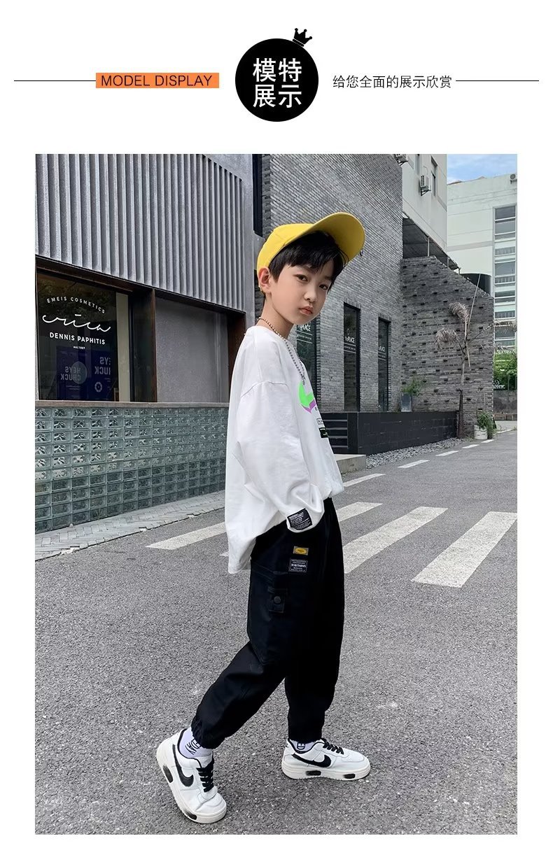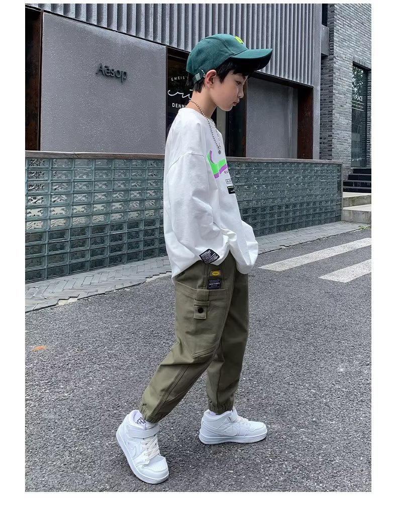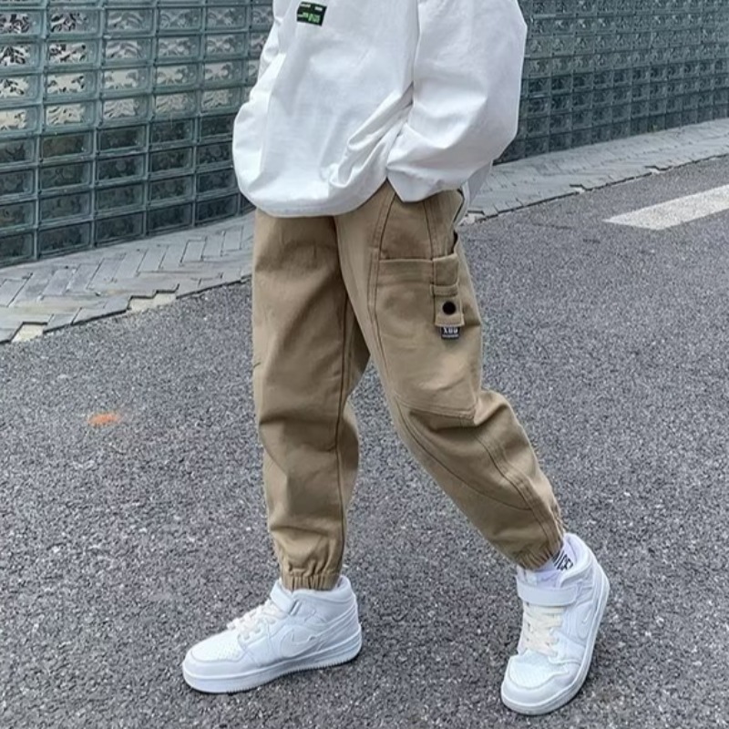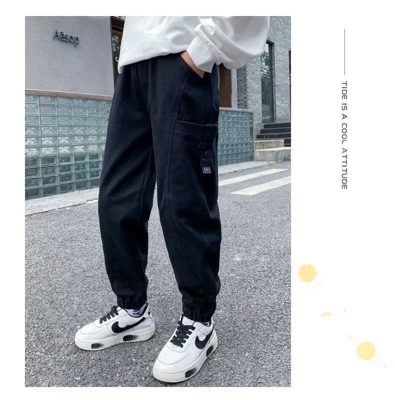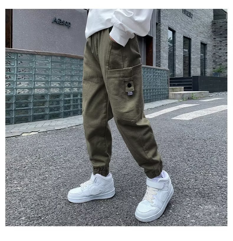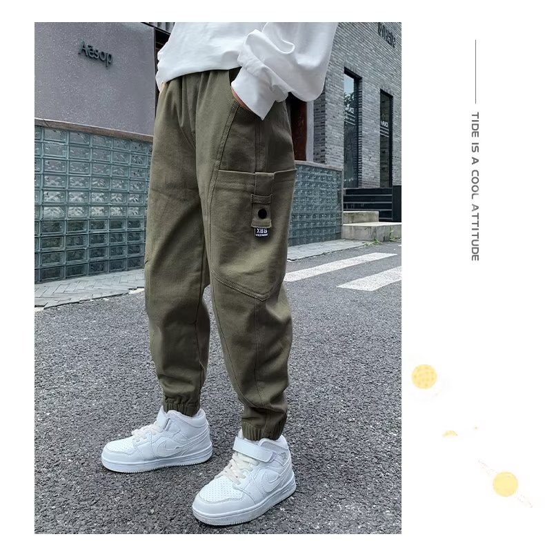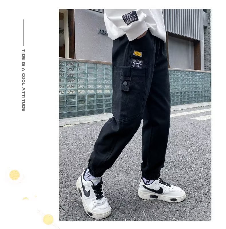 2025년 신상 남아 봄가을 바지 긴바지 포켓 작업복 바지 캐주얼 스포츠 중대형 아동 가을 패션 바지스토어 가기
