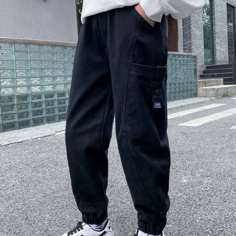 2025년 신상 남아 봄가을 바지 긴바지 포켓 작업복 바지 캐주얼 스포츠 중대형 아동 가을 패션 바지