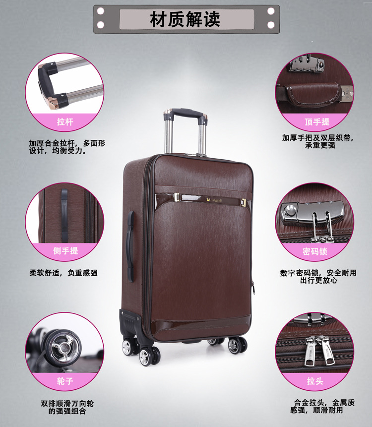 비즈니스 유니버설 휠 가죽 수하물 케이스 학생 가방 24 인치 비밀번호 박스 남자 가방 20 인치 탑승 상자 강한