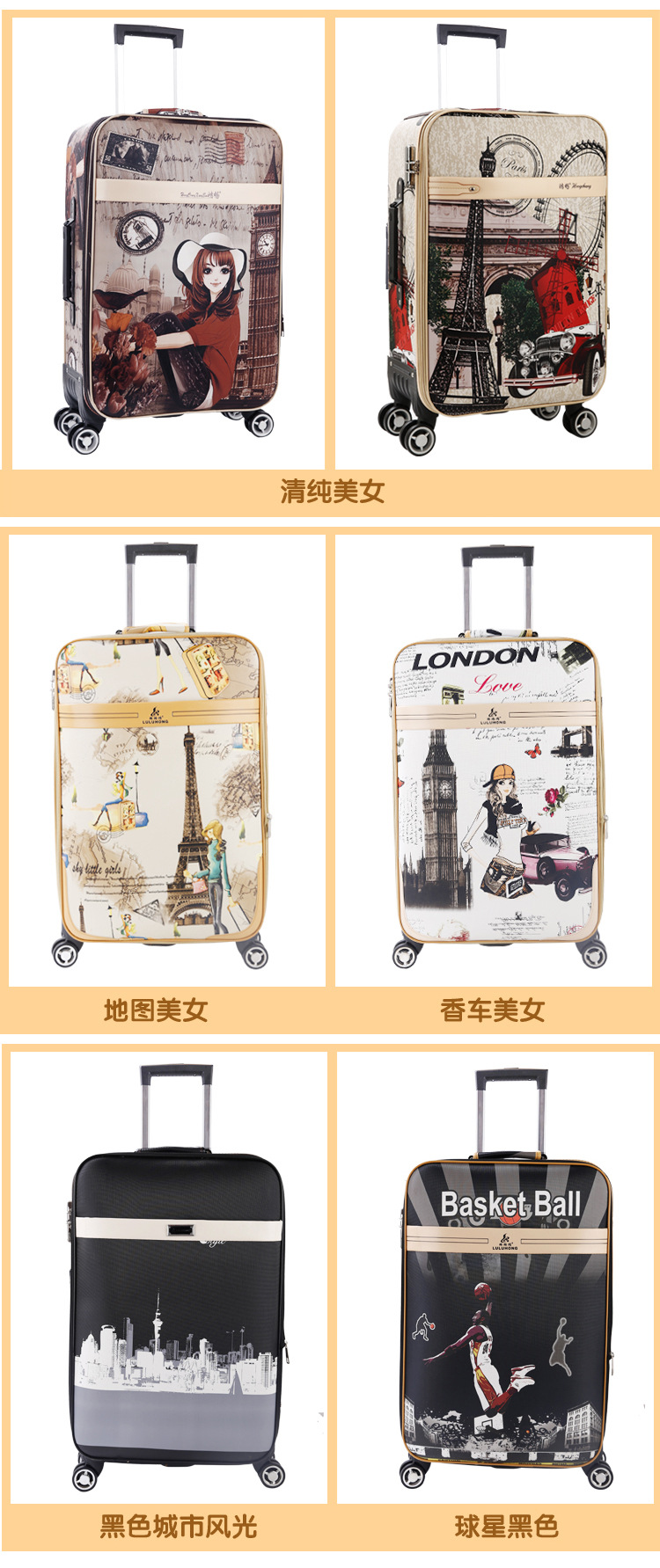轮子  锁  把手  拉杆都在保修范围之内!为了亲们对我们的信心我们加入了8天无理由退换货,还购买了运费险,让买家放心购买,退换无忧!