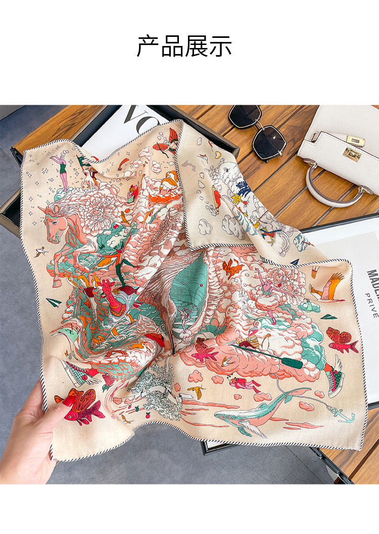 2023 한국 스타일 새로운 양면 인쇄 실크 울 스카프 여성용 하이 센스 패션 모든 매치 실크 울 스퀘어 스카프