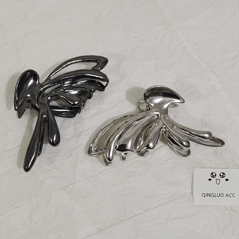 실버 불규칙한 용암 금속 그랩 클립 여성용 스타일 헤어 클립 머리 뒤쪽을위한 간단한 독특한 상어 클립스토어 가기