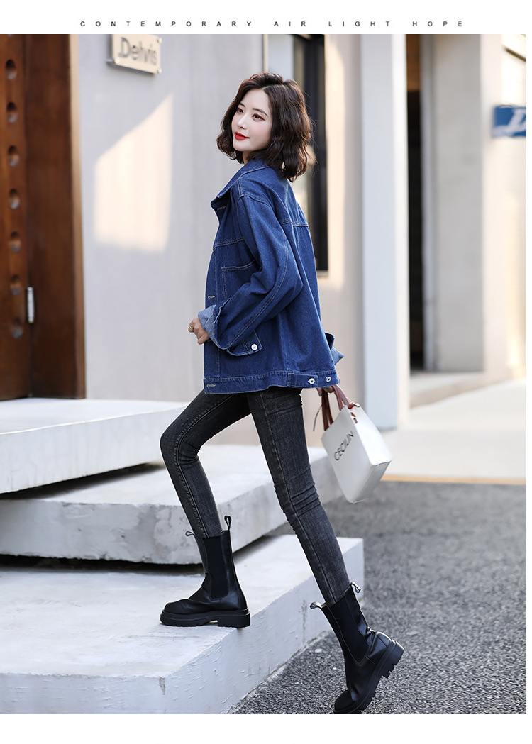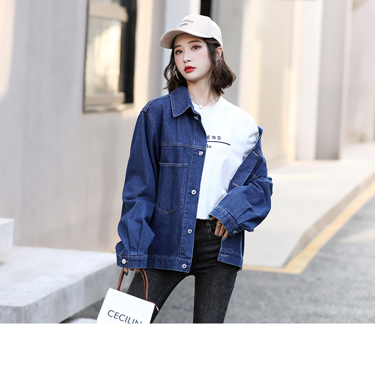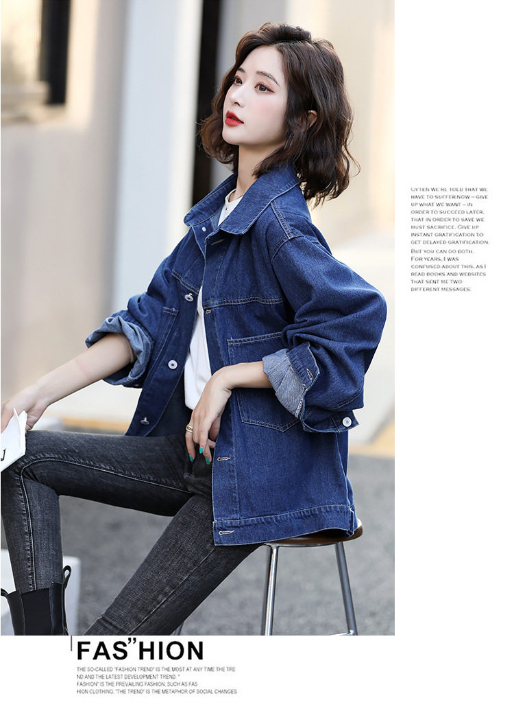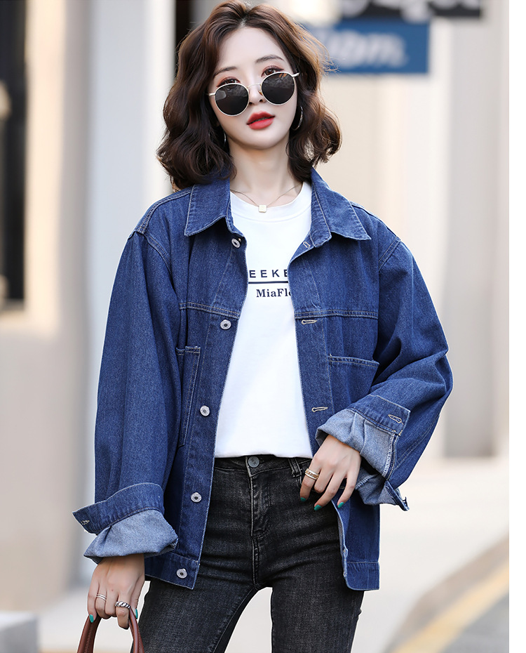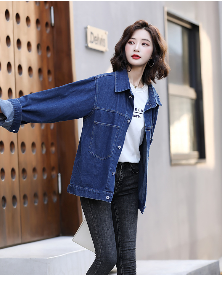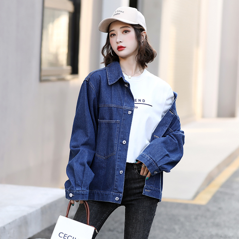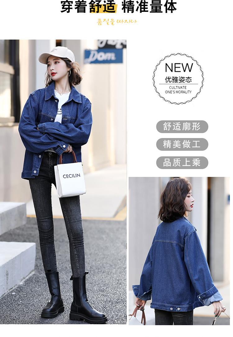 튀긴 스트리트 데님 재킷 여자의 봄과 가을 2023 봄과 가을 새로운 한국어 느슨한 데님 옷 인스 타 그램 패션 재고