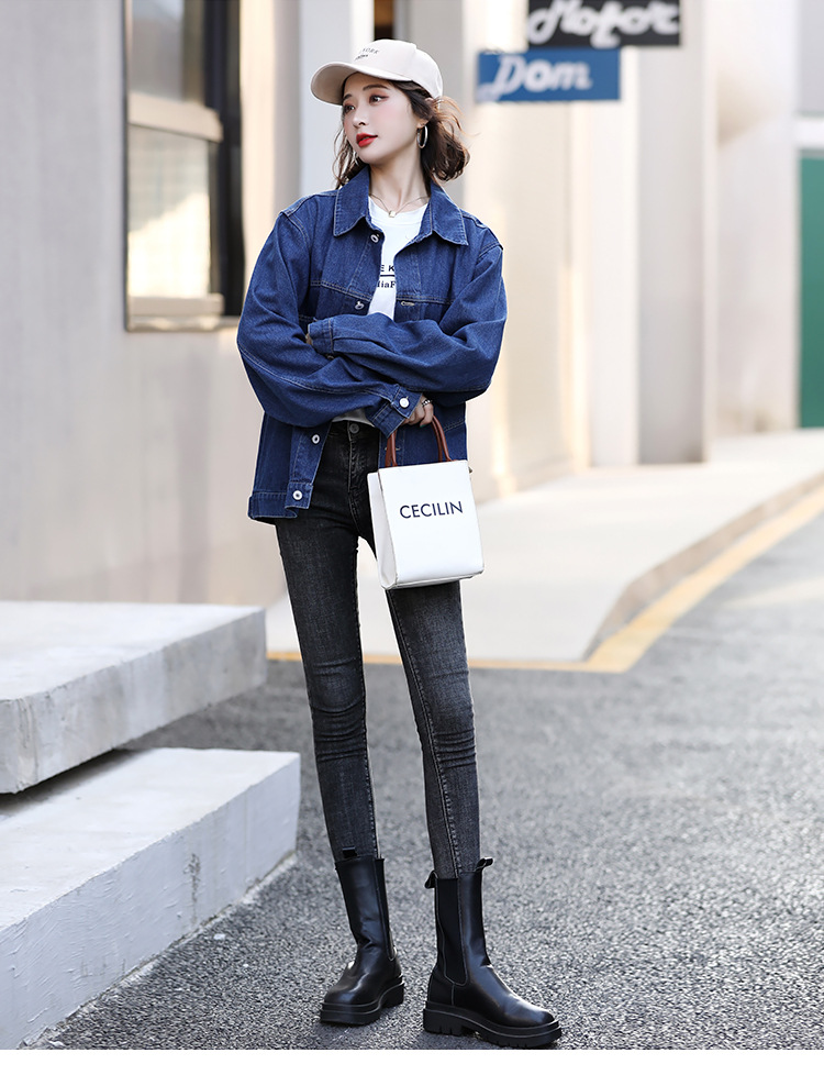 튀긴 스트리트 데님 재킷 여자의 봄과 가을 2023 봄과 가을 새로운 한국어 느슨한 데님 옷 인스 타 그램 패션 재고스토어 가기