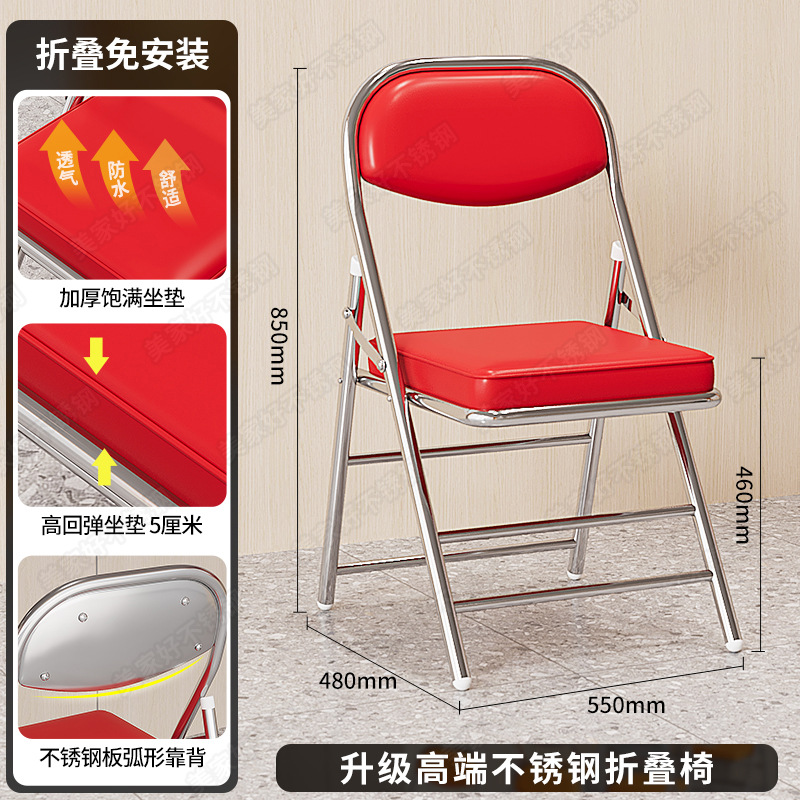• 빨간색 접이식 의자 [두꺼운 스테인리스 스틸 + 업그레이드 가죽] 하중 250kg