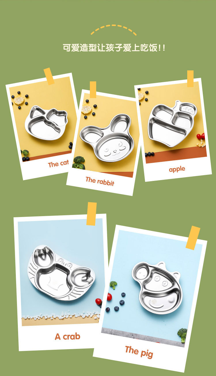 304 스테인레스 스틸 만화 패스트 푸드 플레이트 유치원 학교 식당 식사 어린이 식기 이유식 접시스토어 가기