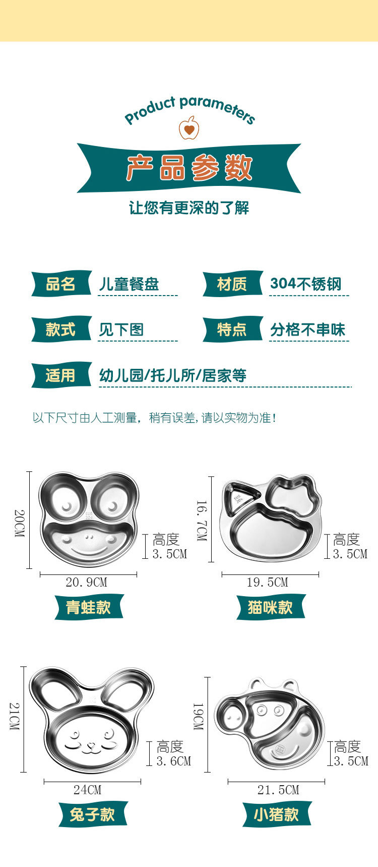 304 스테인레스 스틸 만화 패스트 푸드 플레이트 유치원 학교 식당 식사 어린이 식기 이유식 접시