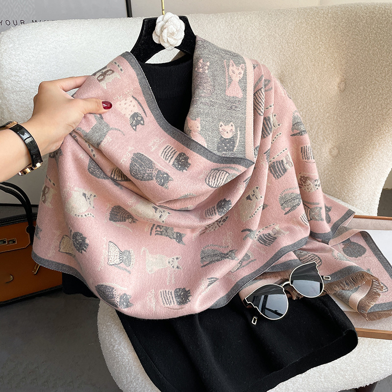 가을과 겨울 새로운 귀여운 만화 새끼 고양이 스카프 여성의 모조 캐시미어 스카프 사무실 에어컨 숄 여성의 겉옷