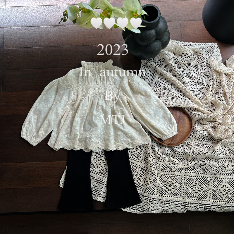 Wheatfield Season 2025 봄, 가을 새로운 스타일 한국 아동복 소녀 레이스 인형 셔츠 아동 꽃 셔츠스토어 가기