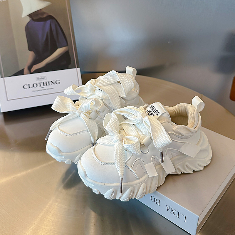 어린이 운동화 두꺼운 밑창 미끄럼 방지 비행 짠 아빠 신발 2023 이른 가을 새 소년 운동화 여자 캐주얼 신발스토어 가기