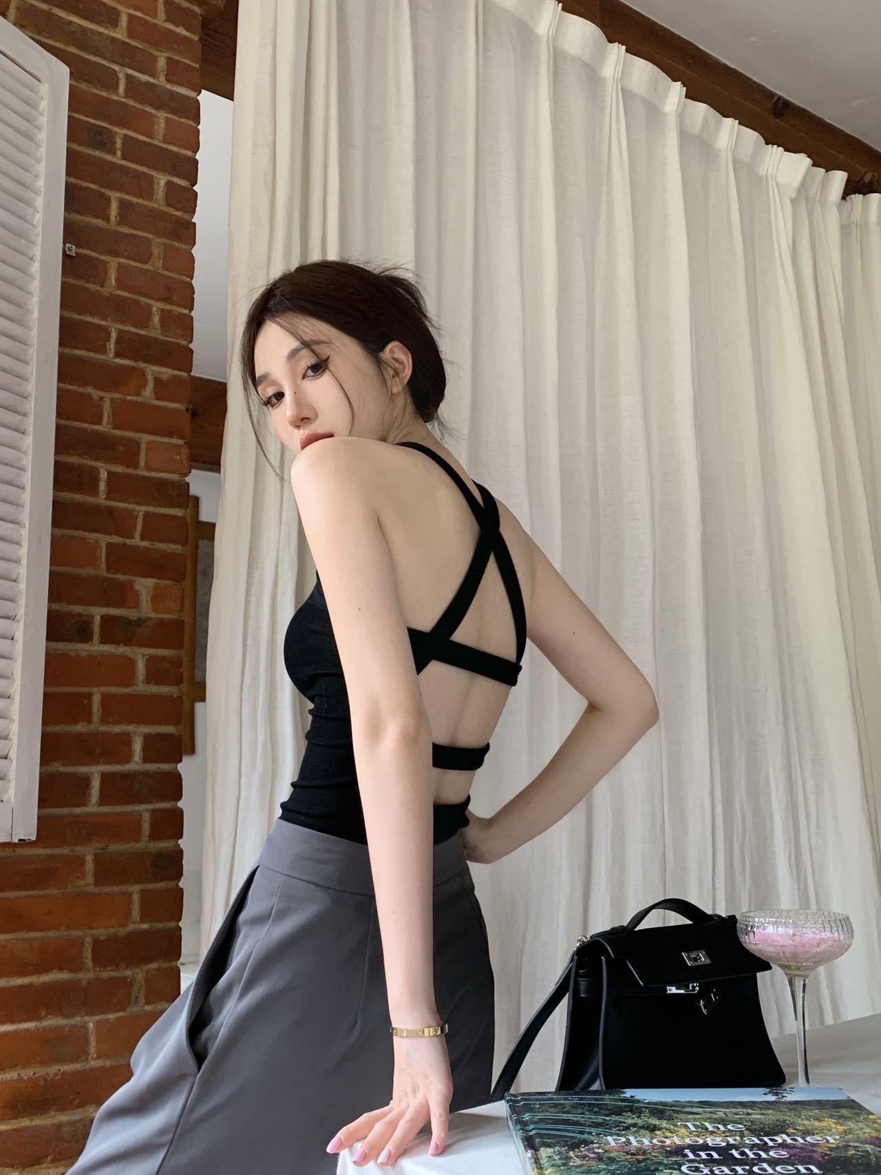 새로운 스파이스 걸 캐미솔 여성용 벨트 가슴 패드 아름다운 등 섹시한 등이없는 슬림 핏 내부베이스 겉옷 짧은 탑스토어 가기