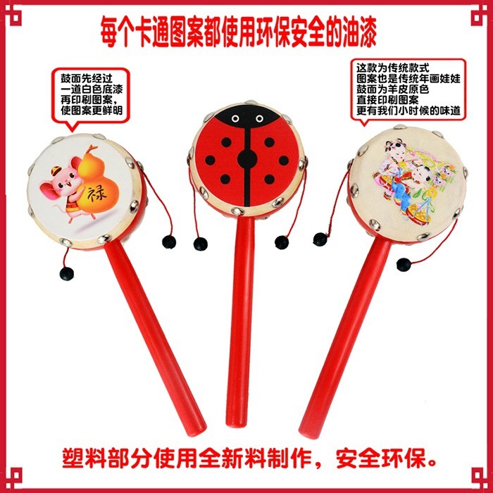 딸랑이와 웨이브 드럼 구식 핸드 드럼 전통 아기 나무 물린 아기 어린이 공장 직접 판매스토어 가기
