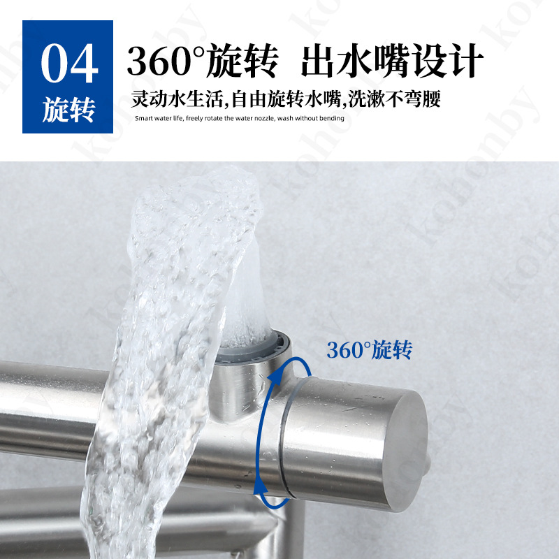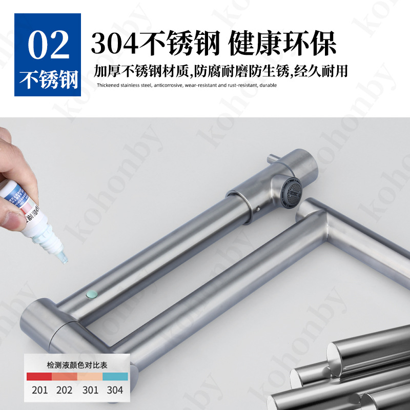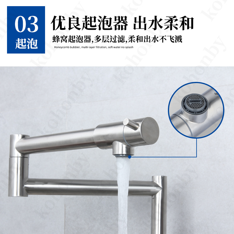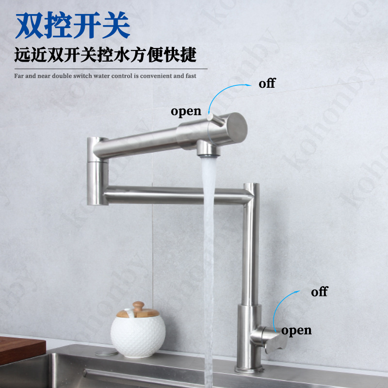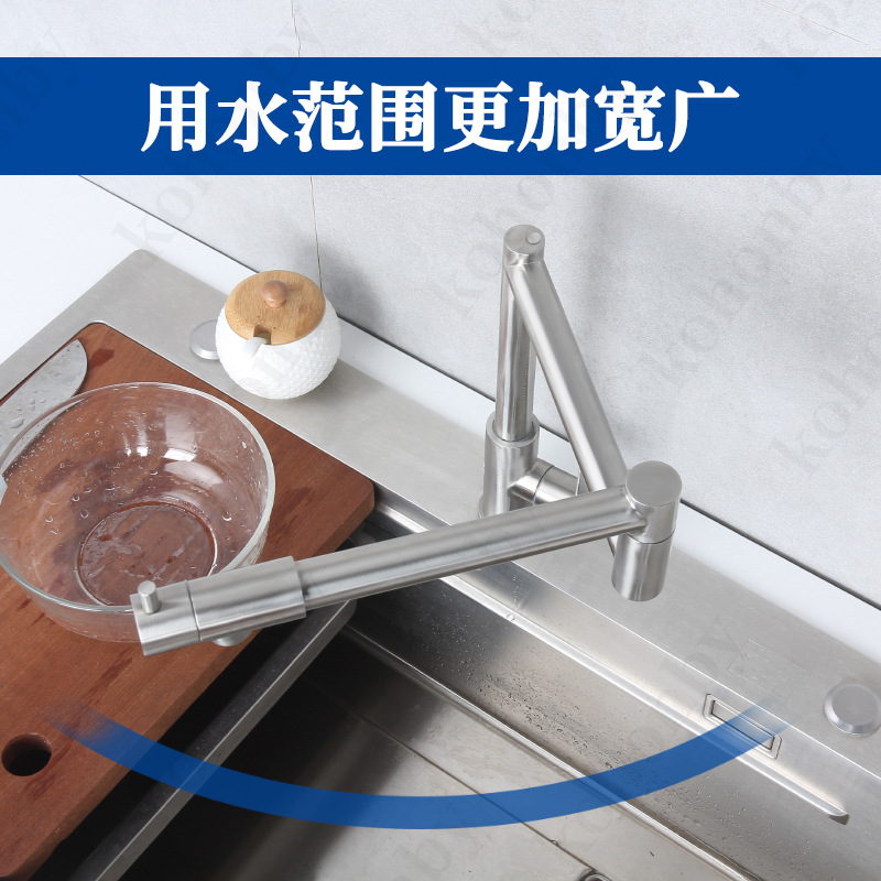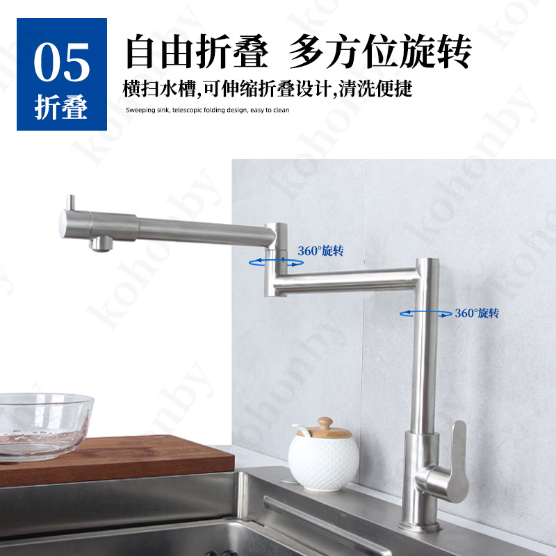 접이식 단일 냉 수도꼭지 주방 야채 세면대 회전 스테인레스 스틸 텔레스코픽 연장 범용 물 튀김 방지 가정용스토어 가기