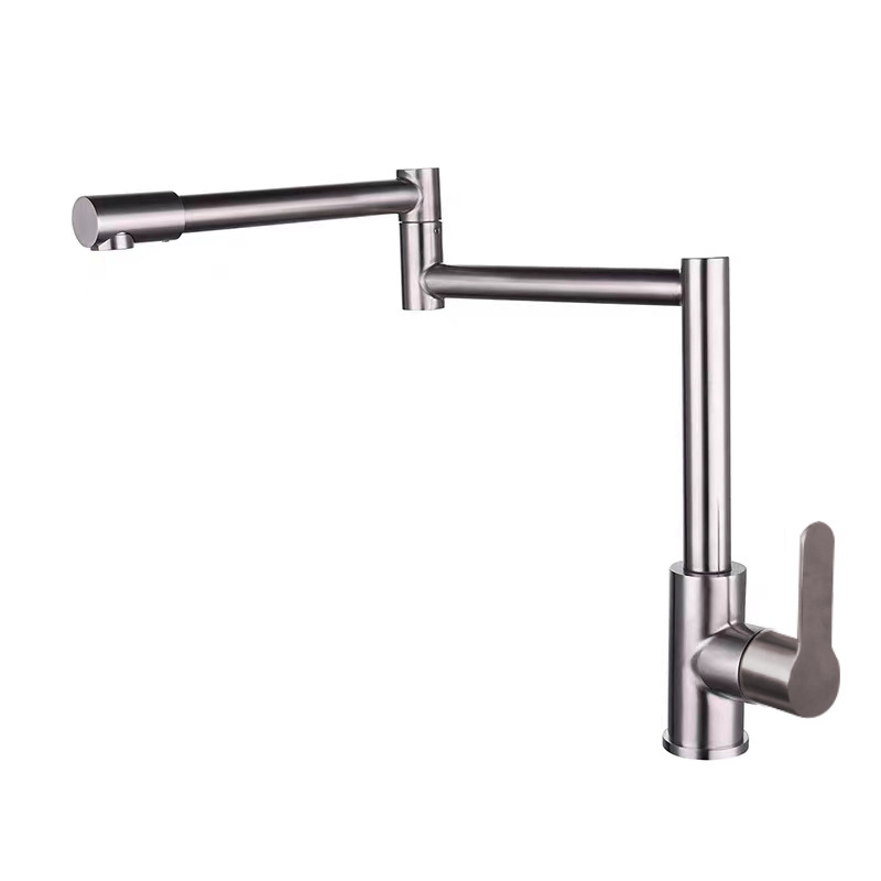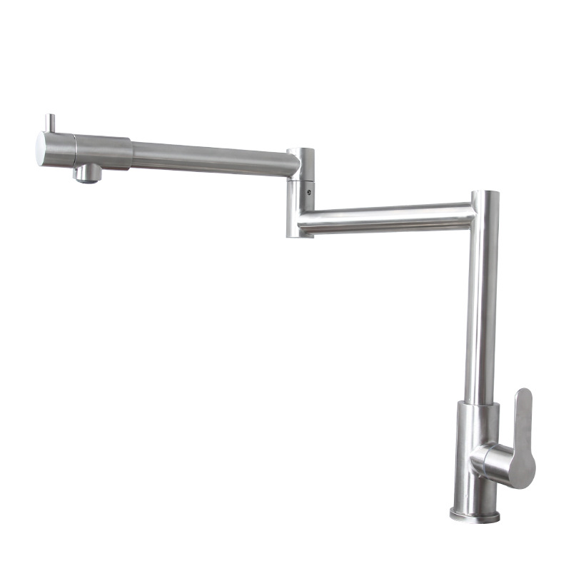 접이식 단일 냉 수도꼭지 주방 야채 세면대 회전 스테인레스 스틸 텔레스코픽 연장 범용 물 튀김 방지 가정용
