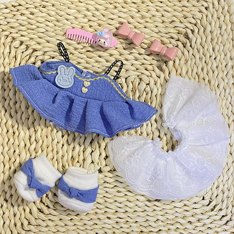 • 블루 멜빵 + 레이스 스커트 + 머리핀 + 신발 (5 점)